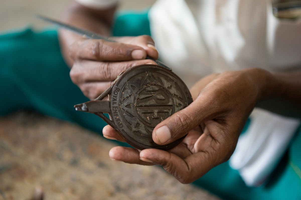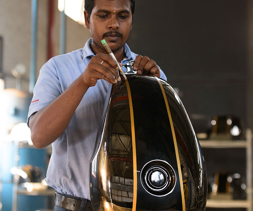 Para celebrar os acabamentos à mão da marca, as motos de edição limitada do 120º aniversário terão um símbolo de depósito em latão fundido, exclusivo e feito à mão. Estes depósitos em latão de aspeto luxuoso foram feitos em colaboração com a família “Sirpi Senthil” que são artesãos de várias gerações da cidade templo de Kumbakonam, Tamil Nadu, Índia. Particularmente especializada há séculos no fabrico de efígies elegantes em latão para os templos mais venerados na Índia, esta é a primeira vez que estes artesãos colaboram com qualquer marca automóvel.