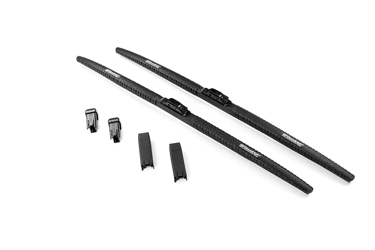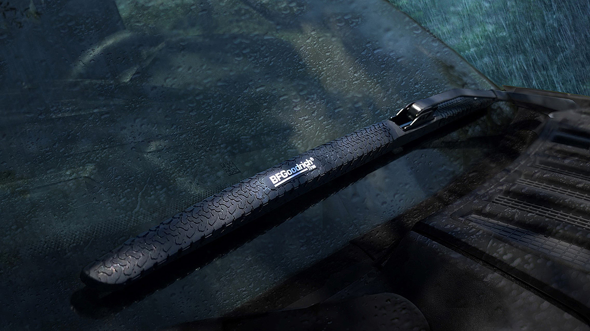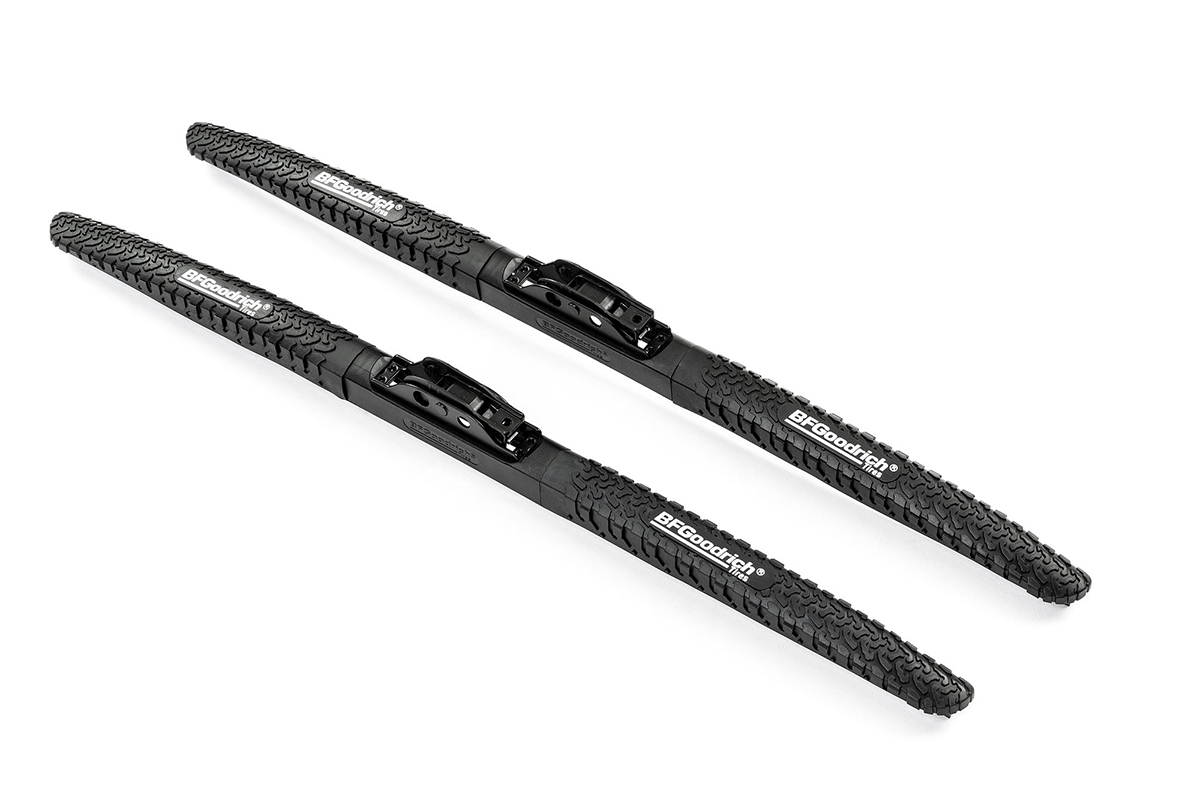 Mas, agora a BF Goodrich lança umas escovas limpa pára-brisas que dão gosto comprar. Foram desenhadas para pessoas que gostavam de ter pequenos pneus presos no pára-brisas. Esta escovas que vê na imagem foram buscar inspiração aos pneus BF Goodrich All-Terrain T/A KO2… utilizam borracha própria do pneu.