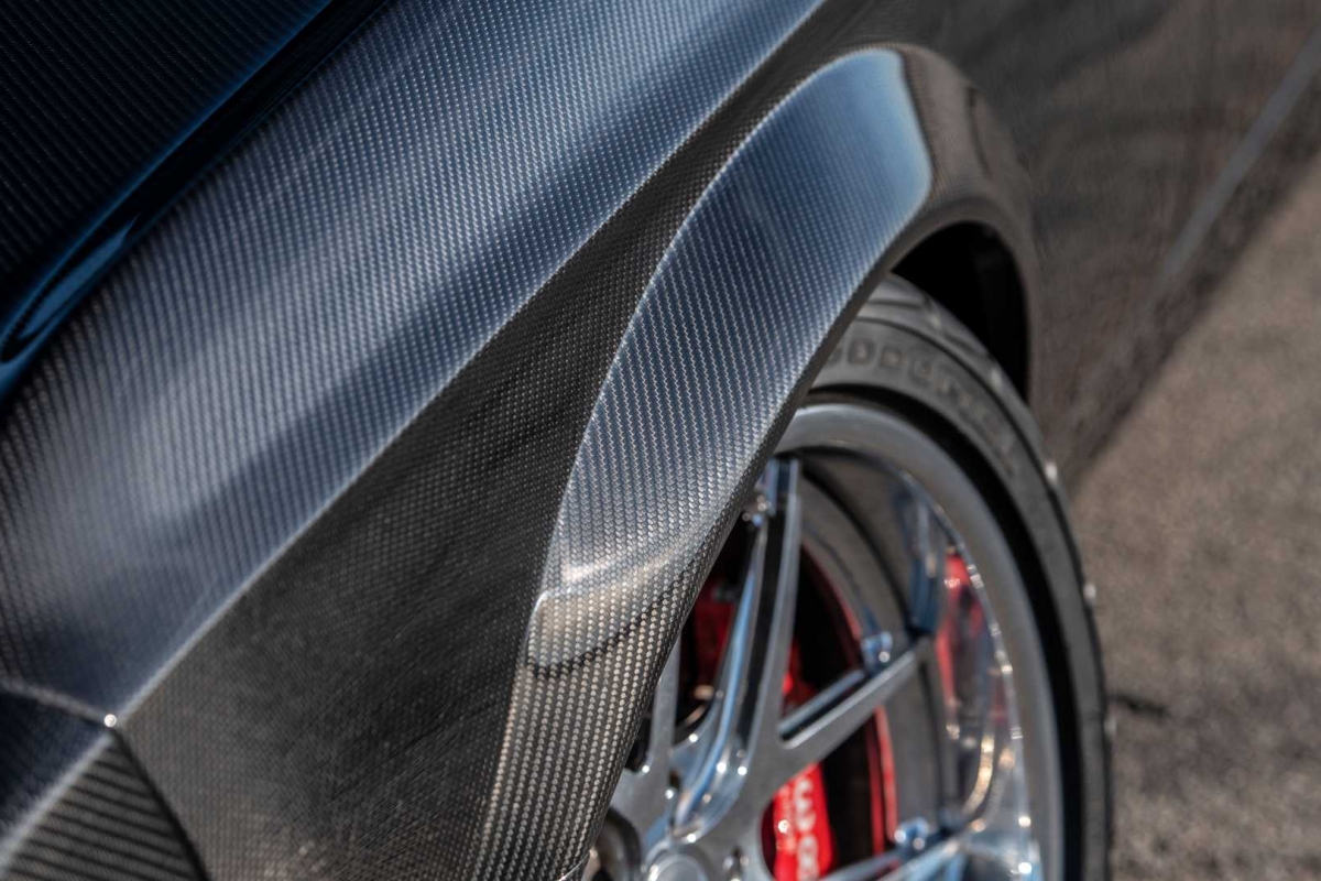 O ponto de partida para o projeto foi um Shelby GT500 original, que foi alvo de digitalização para permitir a reprodução ao milímetro da sua carroçaria em aço, mas agora em fibra de carbono, para redução de 272 kg ao peso do conjunto.