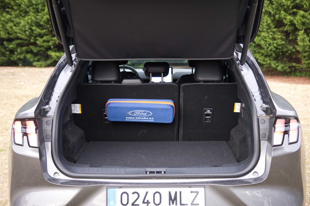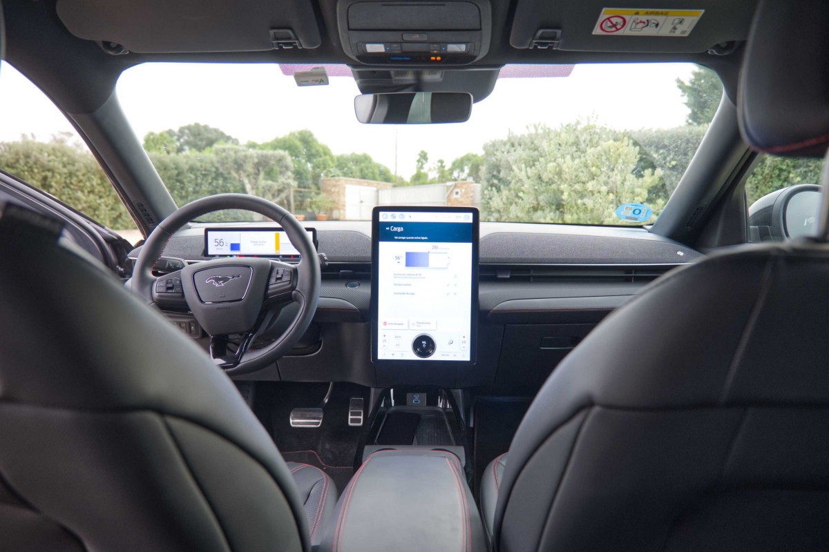 No interior, o Mach-E tem um design minimalista mas de qualidade. O habitáculo espaçoso é adequado para famílias, com amplo espaço para as pernas e para a carga, ao disponibilizar um espaço sob o capô com 100 Litros, e uma bagageira que oferece normalmente 402 litros, ou 1420 litros com os bancos traseiros rebatidos. Os materiais e a qualidade de construção são sólidos, com pouca superfícies de plástico duro.