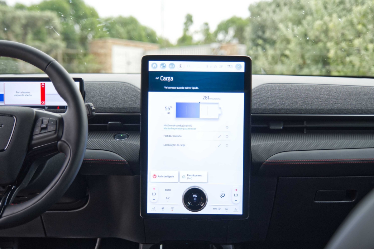 É na tecnologia de assistência ao condutor BlueCruise da Ford que o Mach-E brilha verdadeiramente. Ao contrário de outros, o BlueCruise da Ford é primeiro sistema avançado de assistência ao condutor homologado na União Europeia para condução com as mãos livres até ao limite de velocidade legal em autoestradas pré-mapeadas, designadas como “Zonas Azuis Mãos Livres”. Para já o BlueCruise funciona em 4.100 km de vias em Portugal. Na prática, já é possível fazer 90% da viagem em autoestrada entre Lisboa e Porto sem colocar as mãos no volante. Assim que o carro entra numa Blue Zone, o condutor pode ativar o BlueCruise, que assume o comando com controlo de velocidade de cruzeiro adaptativo e tecnologia de centragem na faixa de rodagem. O verdadeiro atrativo é a funcionalidade de condução mãos-livres de nível 2+, que permite aos condutores tirar as mãos do volante enquanto mantêm o foco na estrada. O veículo utiliza uma combinação de câmaras, radar e dados de GPS para manter uma distância segura dos outros veículos, ajuste da velocidade com base nas condições de trânsito e manter o carro centrado na sua faixa de rodagem.