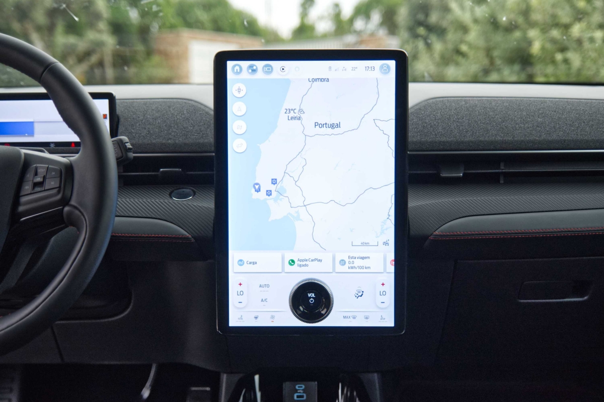 O grande ecrã tátil de 15,5 polegadas com SYNC 4A assume o destaque no centro do tabliê, oferecendo controlos intuitivos, gráficos claros e uma integração perfeita com o smartphone ao oferecer conectividade sem fios para Apple CarPlay e Android Auto. Alguns utilizadores podem achar a falta de botões físicos frustrante no início, mas a capacidade de resposta do sistema e a disposição lógica atenuam este problema.