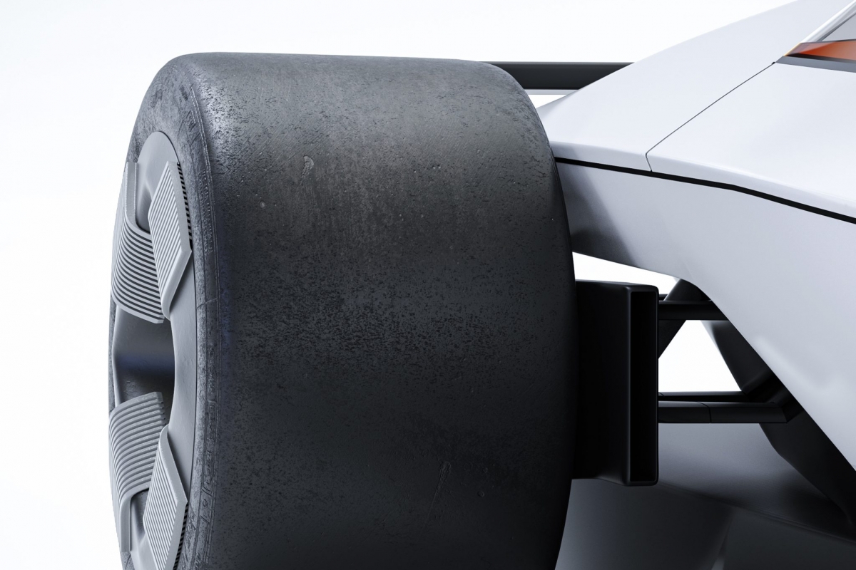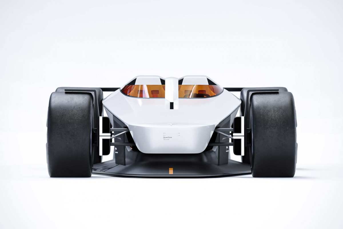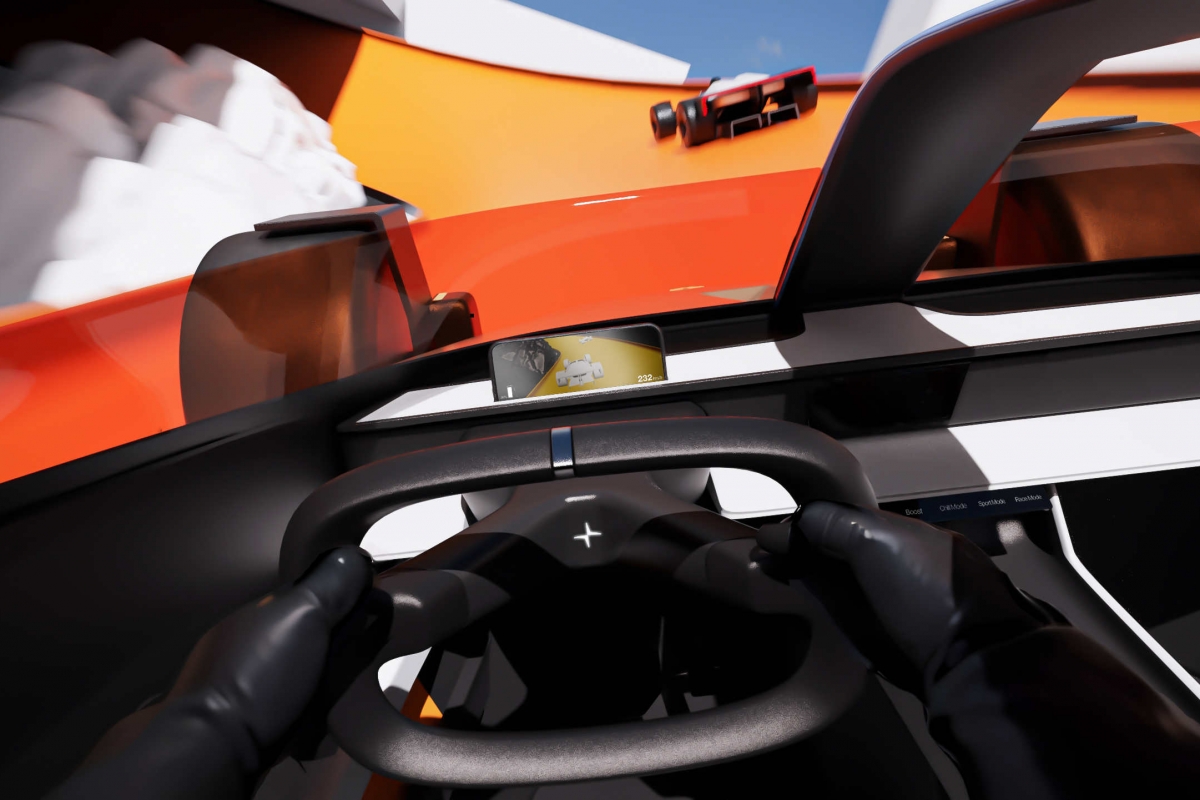 O briefing do Polestar Design Contest 2024 incluía também a criação de um ambiente que enquadrasse o veículo. “Desenvolvi uma solução de estética minimalista, brutalista e monocromática, onde uma pista laranja vibrante serpenteia por entre as estruturas, criando um forte contraste visual”, afirma o jovem designer português que deixa um agradecimento a Jeroen Claus e FabianBreës, ambos designers com destaque em edições anteriores do concurso da Polestar, pelas “valiosas dicas ao longo do processo, que foram fundamentais para aprimorar a qualidade do resultado final.”