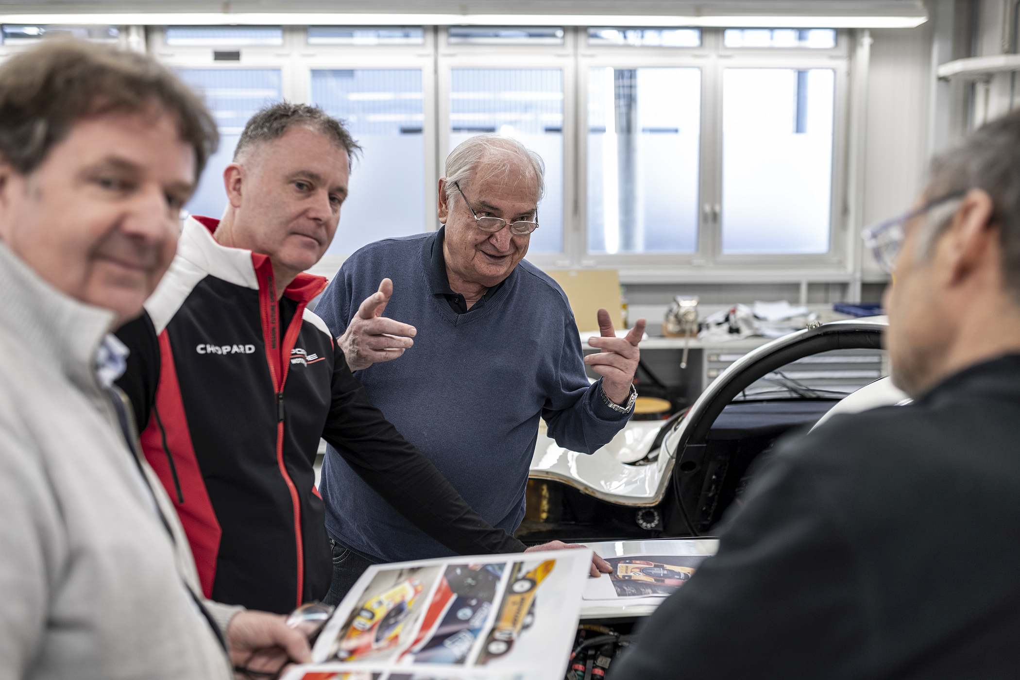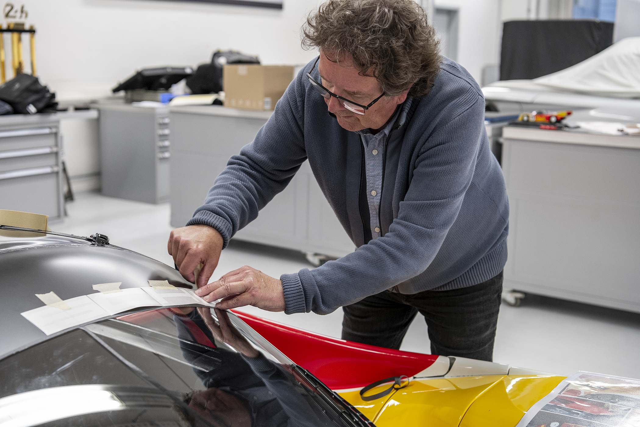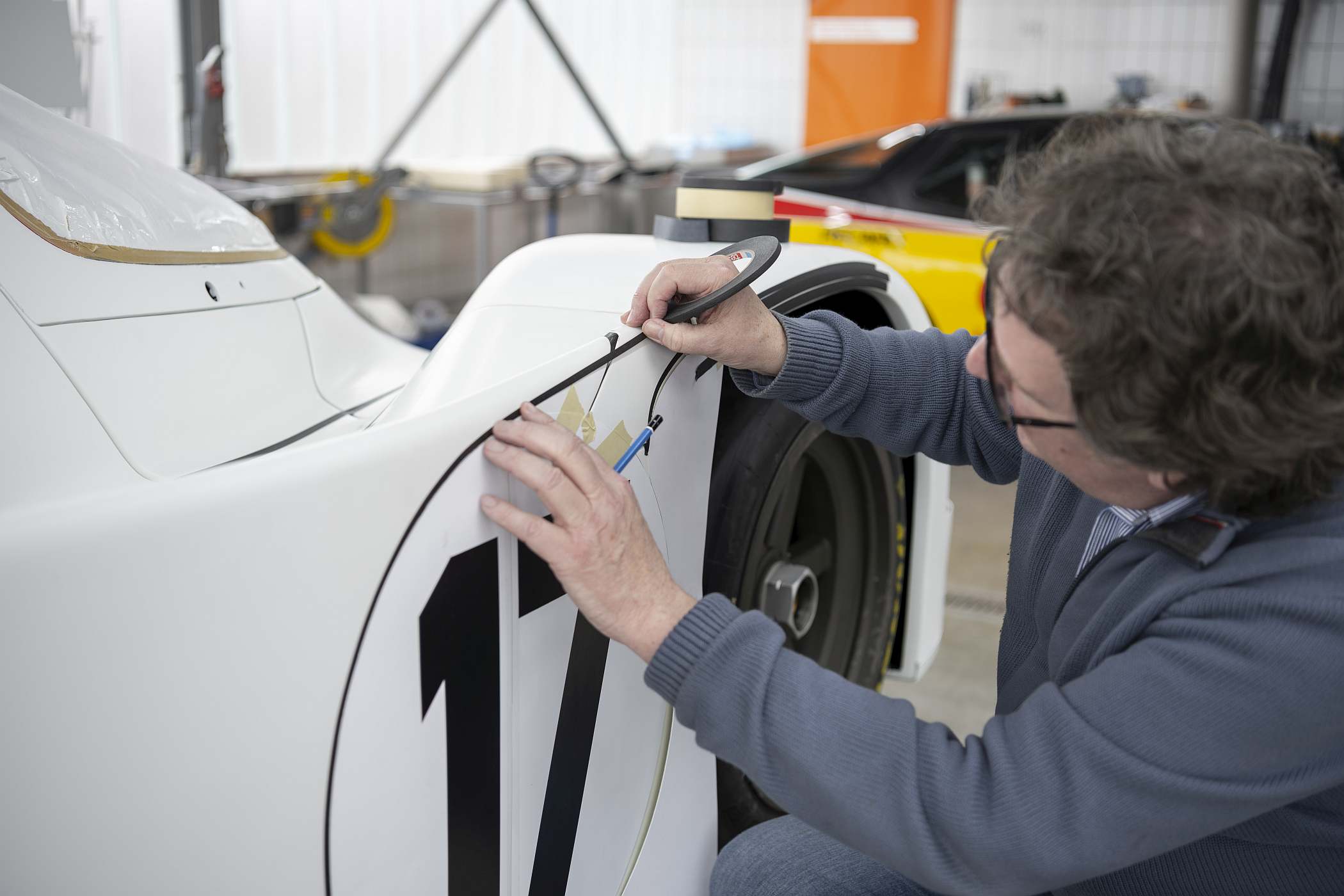 O autor da decoração foi chamado também para o processo de recuperação do 962 C, trazendo consigo esboços e desenhos originais de há 35 anos.