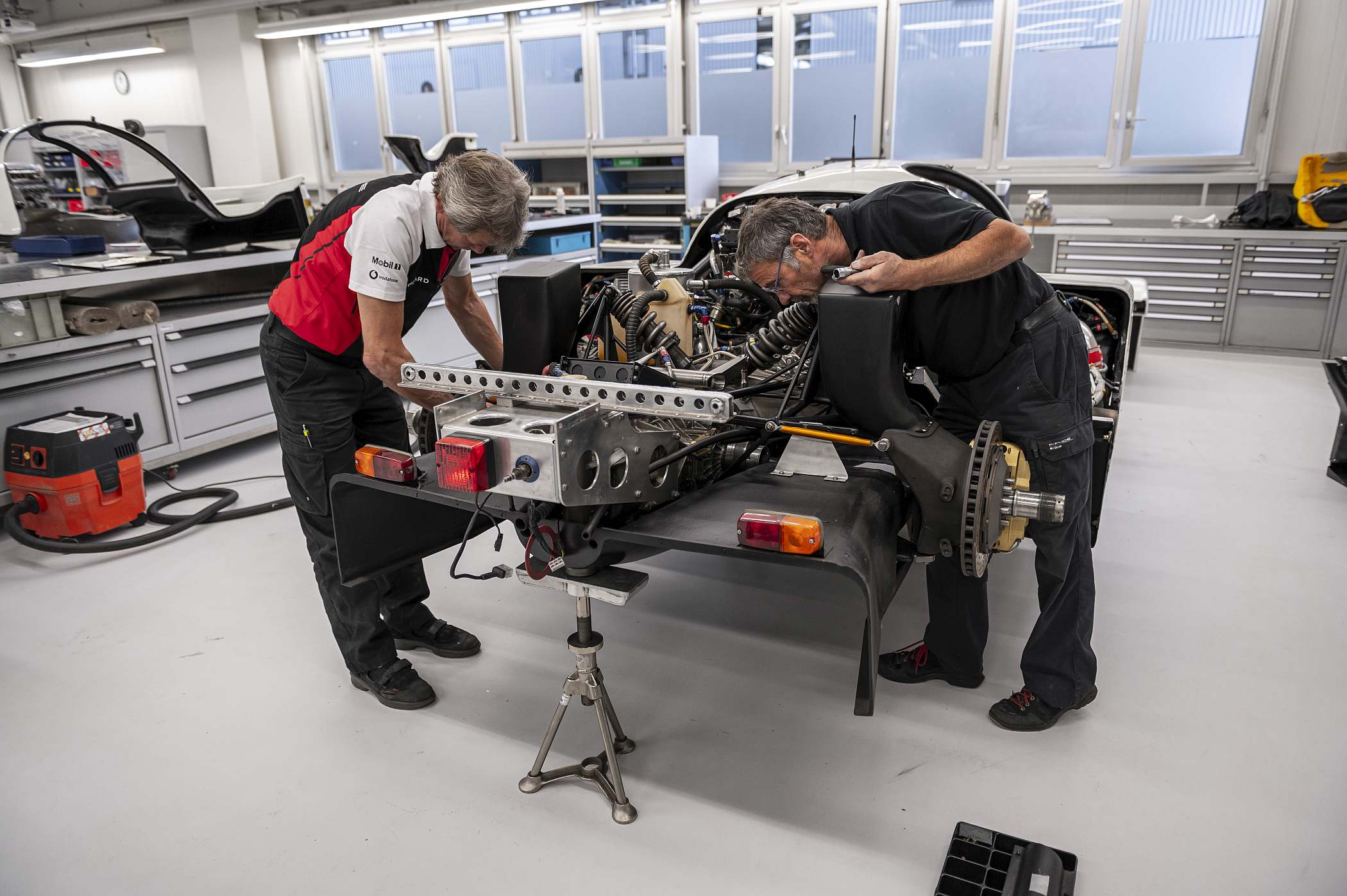 “Estávamos sempre a passar por este carro no armazém. Então, há cerca de um ano e meio, decidimos tirá-lo de lá, transferi-lo para Weissach e trabalhar nele”, refere Burger, cuja equipa teve de reconstruir muitas das peças porque já estavam gastas. “A cooperação com os outros departamentos da Porsche foi excelente. Encontrámos quase tudo o que precisávamos num raio de 30 metros”, acrescenta.
