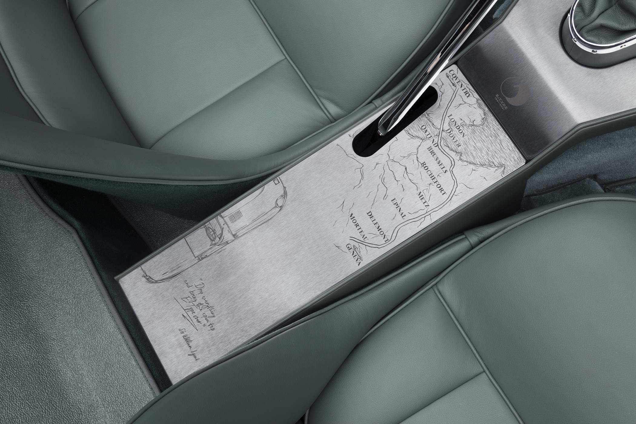 Por outro lado, regressando uma vez mais à história de como foram levados até Genebra em 1961, o interior revela uma característica especial na consola central entre os dois bancos: uma gravação da autoria do artista e designer Johnny Dowell, conhecido como King Nerd, que evoca as viagens de Coventry a Genebra dos veículos originais. O proprietário é consultado sobre os detalhes e cada uma destas obras de arte demora mais de 100 horas a ser produzida.