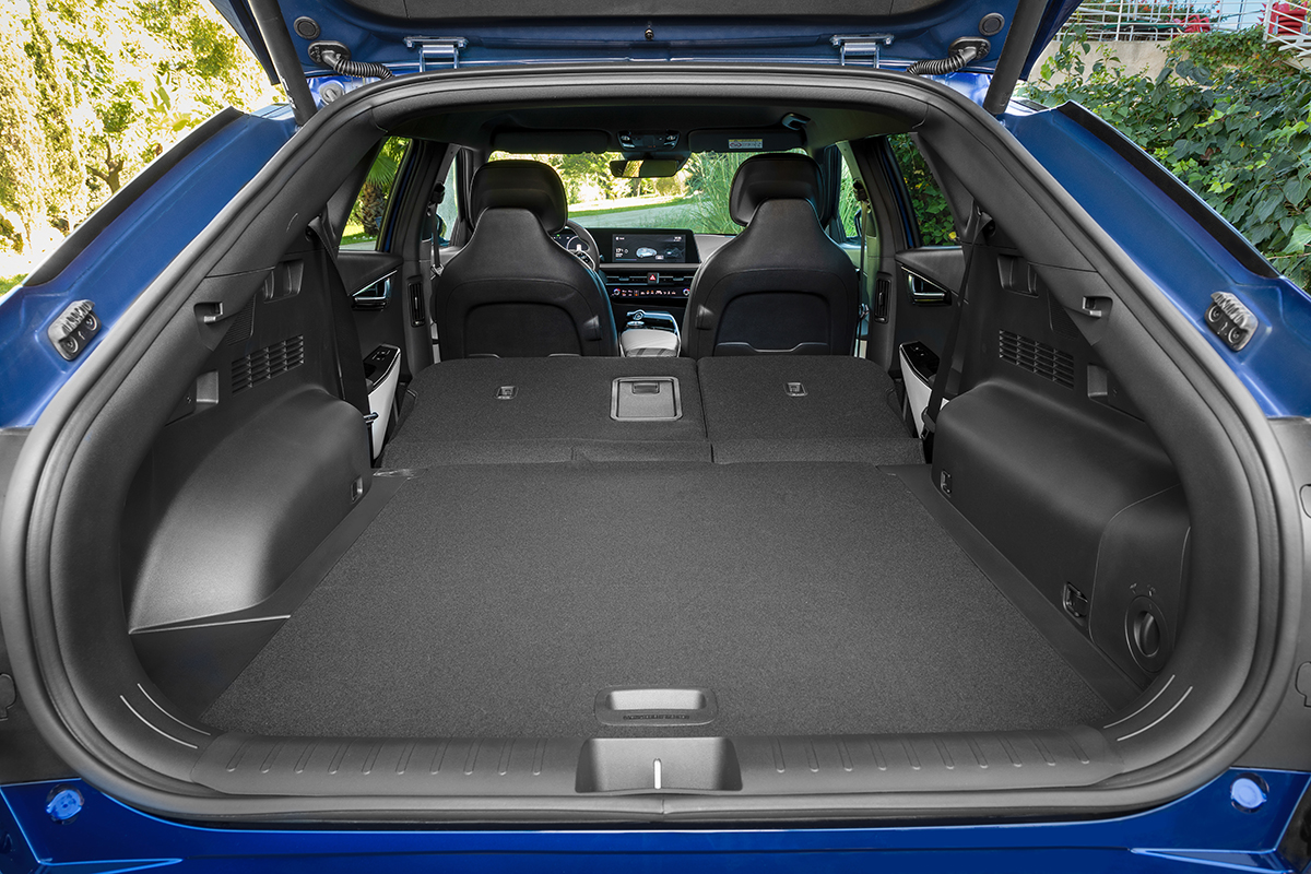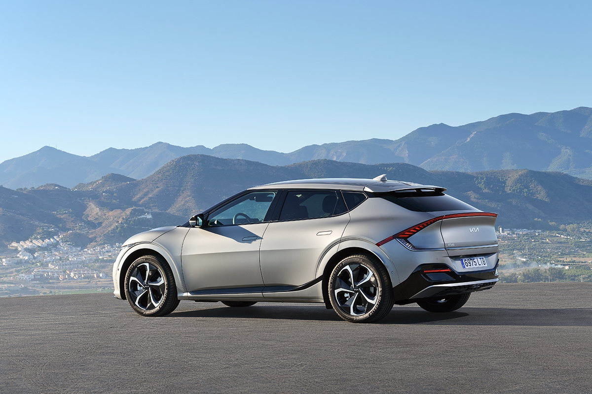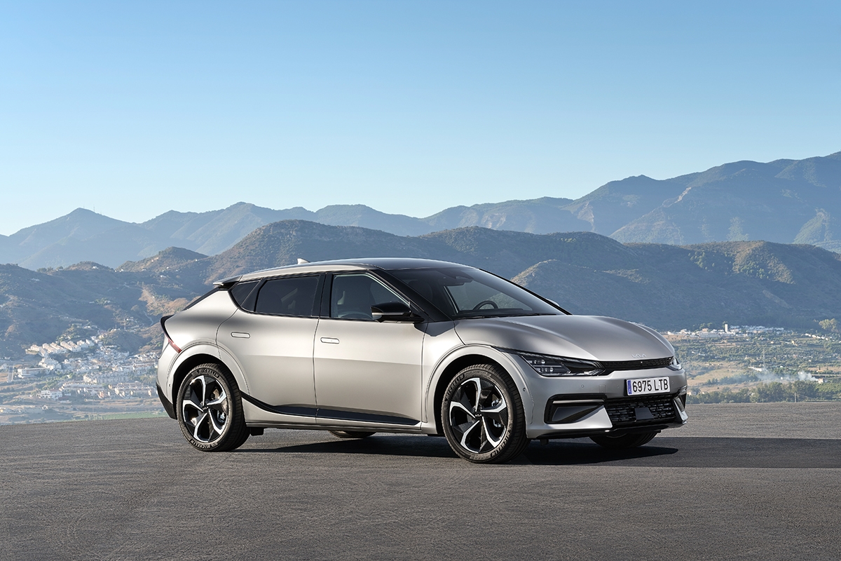 O EV6 é construído sobre a plataforma E-GMP, partilhada também com o Hyundai Ioniq 5 e consiste num skate em que as baterias formam um fundo completamente plano e os motores são colocados nos respetivos eixos motrizes. Este tipo de construção modular permite uma grande liberdade criativa aos designers, sobretudo quando se trata de projetar o espaço interior. Se por fora o EV6 impressiona pelo seu tamanho, o interior não fica atrás revelando um espaço a bordo capaz de envergonhar a maioria dos lugares de avião em classe executiva. Mesmo os lugares atrás têm espaço suficiente para três ocupantes graças à eliminação do túnel central, ainda que o lugar do meio seja penalizado por servir também de apoio de braços amovível. O espaço da bagageira não foi descurado e temos 520 litros ou 1300 com os bancos traseiros rebatidos. Há ainda um compartimento com 52 litros sob o capô onde podem ser guardados os cabos de carregamento.