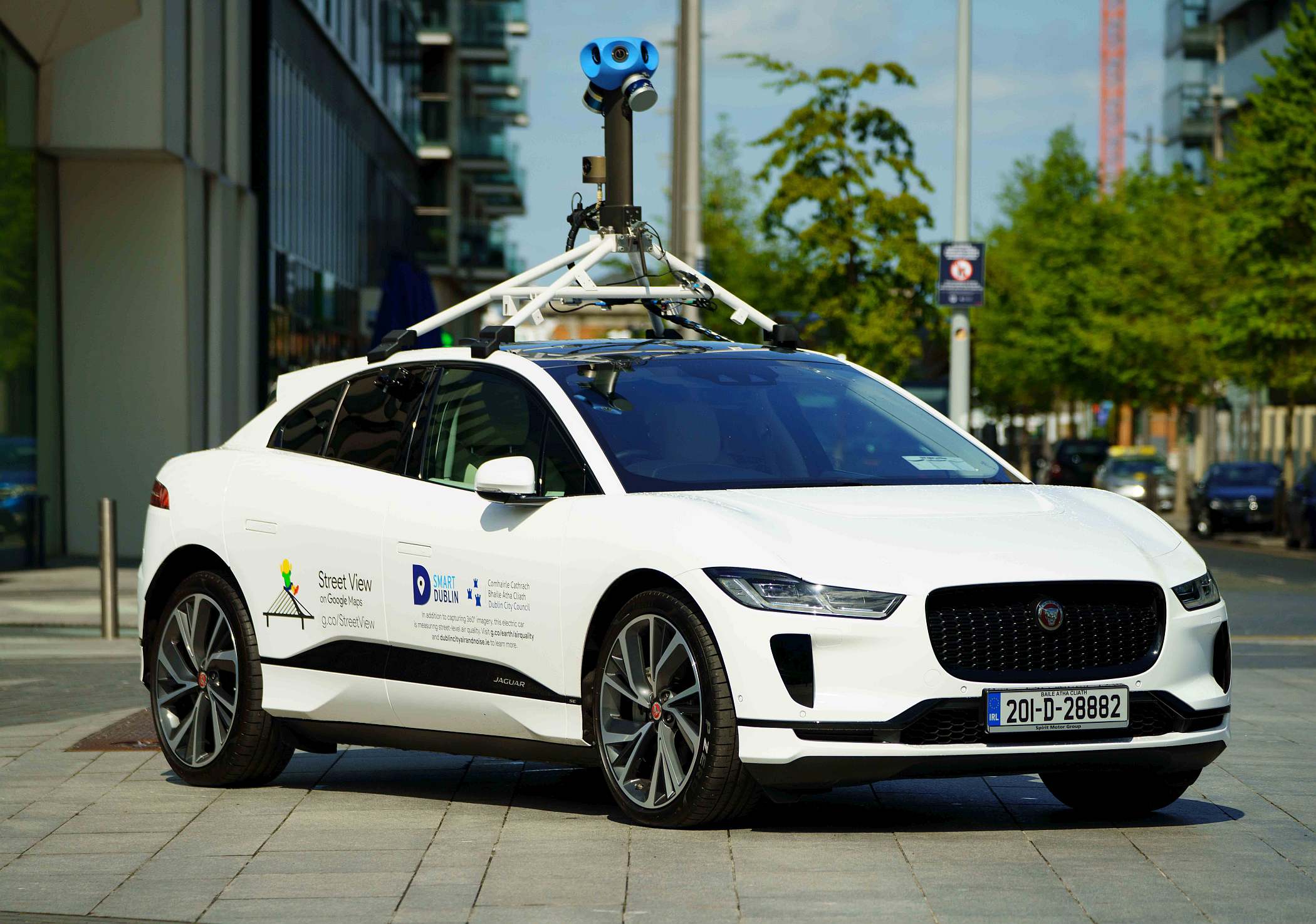 O I-Pace é o primeiro veículo totalmente elétrico da Google que será utilizado para medir a qualidade do ar em Dublin, rua-a-rua. Este trabalho irá incluir as emissões de dióxido de azoto (NO2) e dióxido de carbono (CO2) e partículas finas (PM2,5). Permitirá também manter o Google Maps atualizado.
