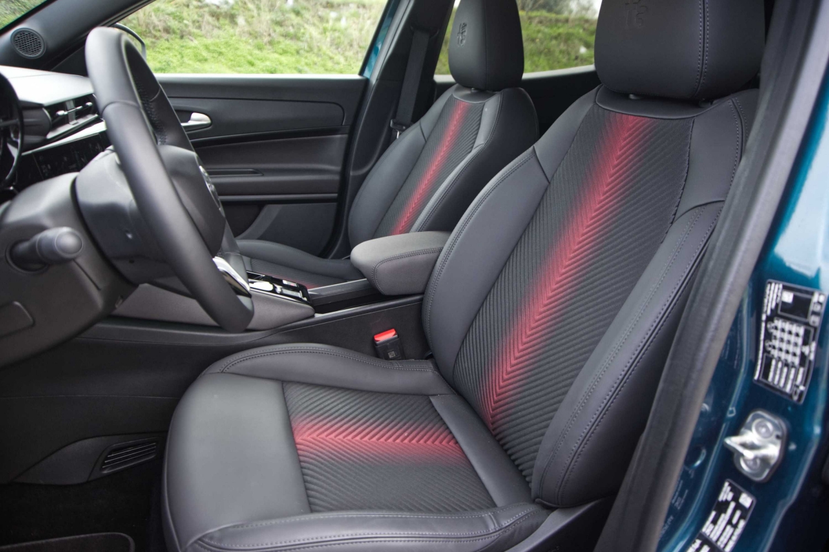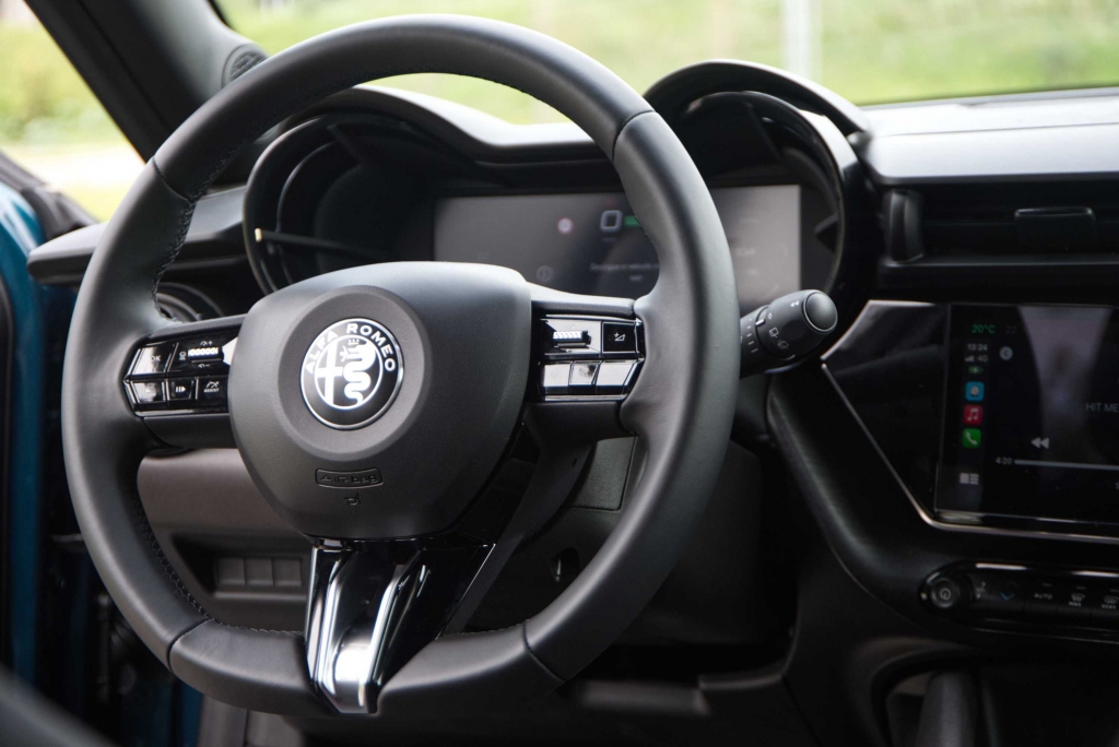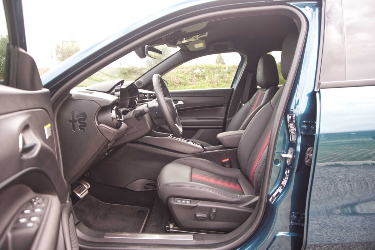 As cores vermelha e preta do habitáculo do Junior adequam-se ao caráter desportivo da marca Alfa Romeo. Enquanto a consola central elevada e o ecrã de infoentretenimento de 10,25 polegadas com suporte para Apple CarPlay e Android Auto, orientado para o condutor separam os dois lugares da frente. Os mostradores analógicos redondos à frente do condutor foram substituídos por um ecrã digital de 10,25 polegadas. No entanto é possível imitar uma disposição clássica do painel de instrumentos para uma sensação mais autêntica. O volante tem uma boa pega, e os logótipos Alfa Romeo subtilmente brilhantes nas saídas de ar redondas são um toque elegante.