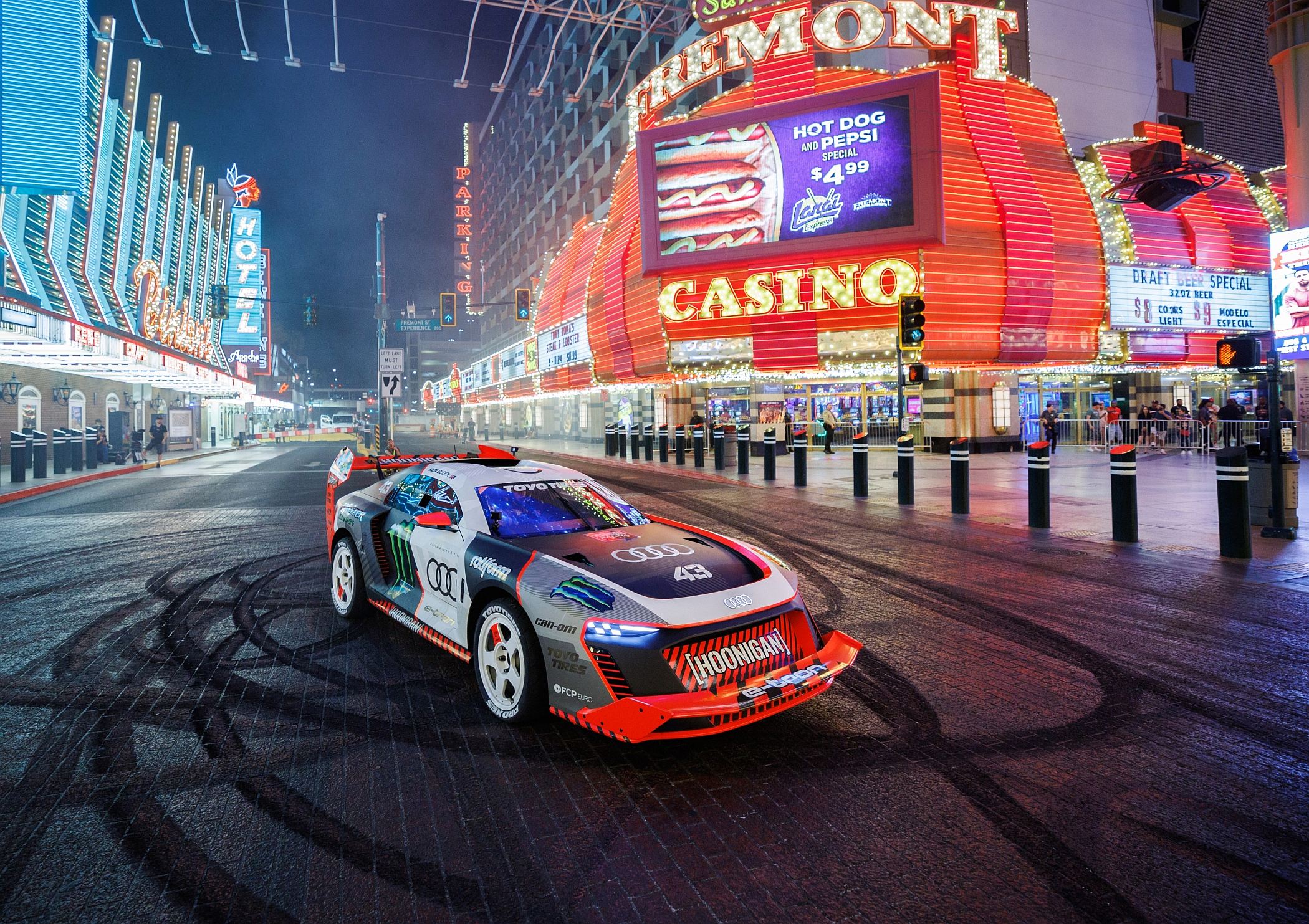 Las Vegas, no Nevada, Estados Unidos da América, é conhecida pela sua vida efervescente associada aos casinos e avenidas cheias de luzes de néon. Mas, para Ken Block é também o palco perfeito para demonstrar o potencial do seu novo Audi S1 Hoonitron, um modelo de competição 100% elétrico com que o piloto inicia uma nova série de gincanas, agora sem emissões poluentes provenientes dos escapes.