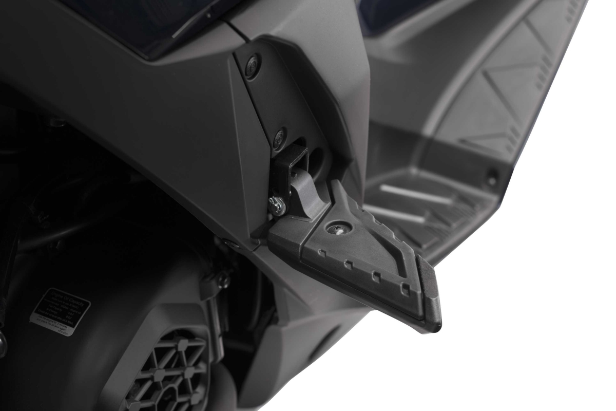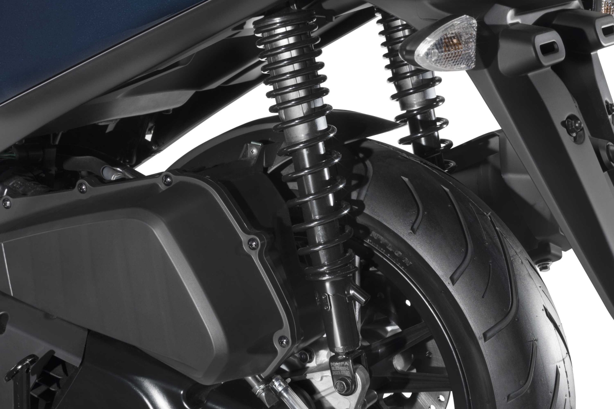 Vem ainda equipada com rodas dianteiras 14’’ e traseiras de 13’’, travões de discos dianteiros e traseiros, com travagem combinada (CBS) e iluminação LED.