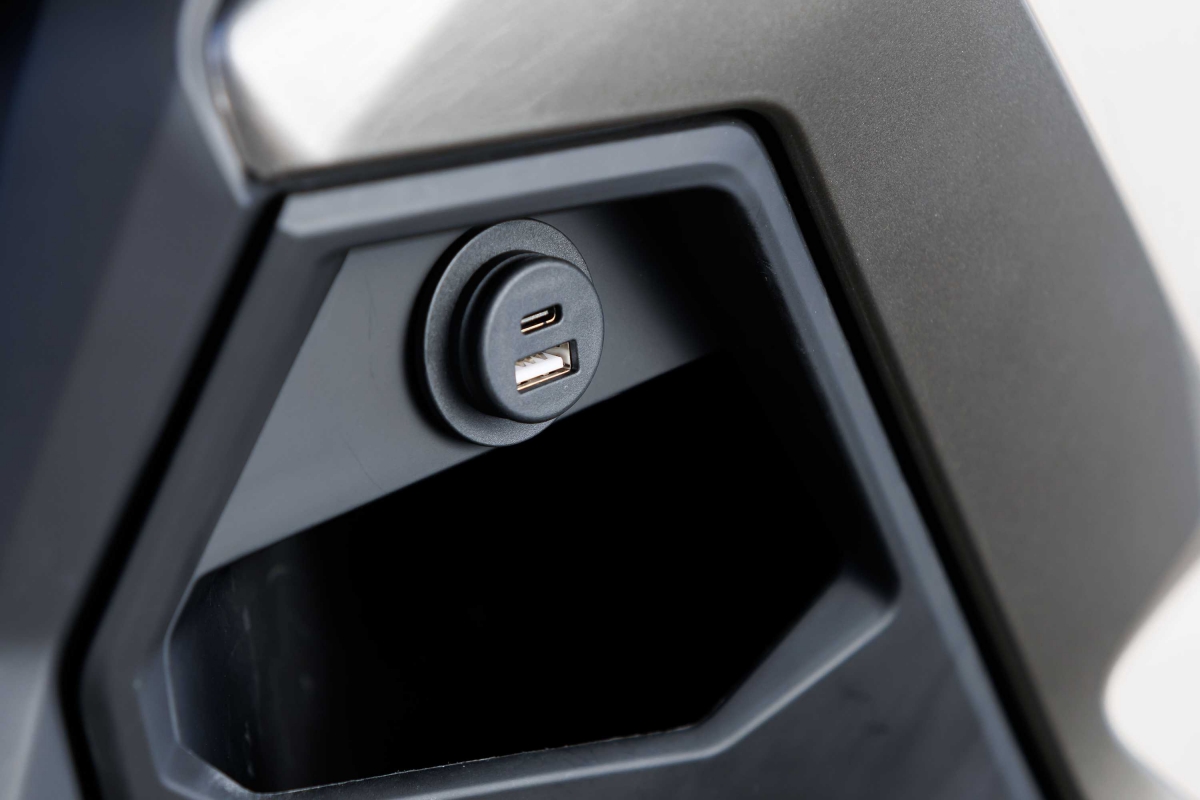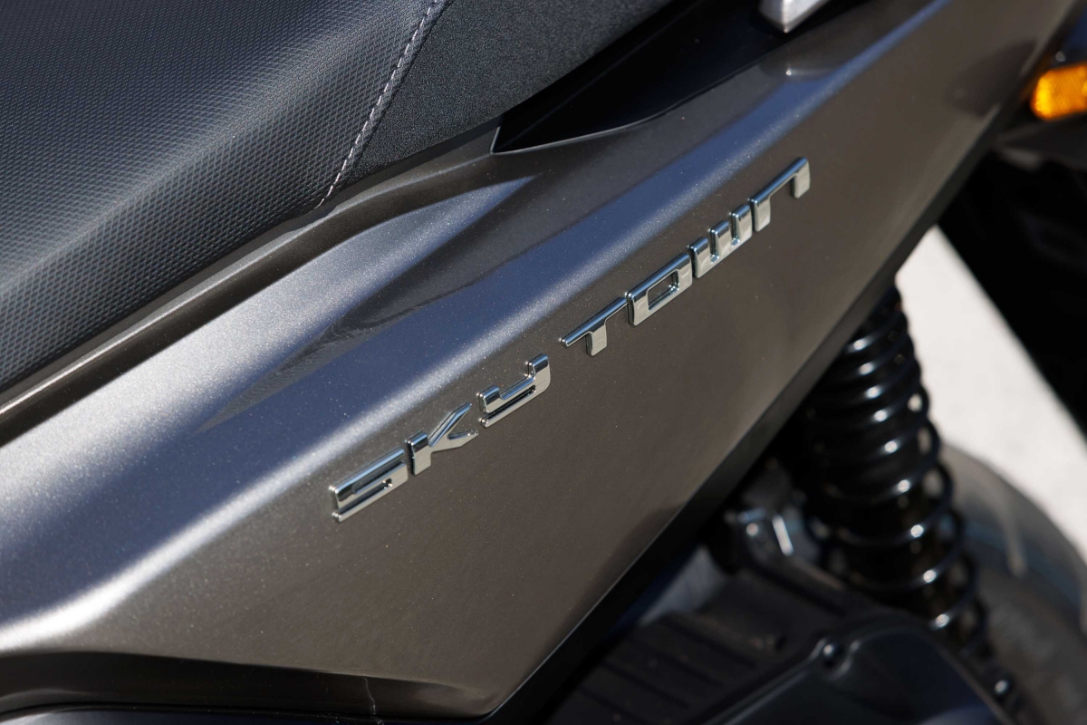 Porque conforto e comodidade são pontos fortes em qualquer viagem, seja diária de curta duração ou lazer de mais longa distância, a Skytown 125 equipa ainda uma tomada USB, ecrã TFT a cores e pegas para passageiro.