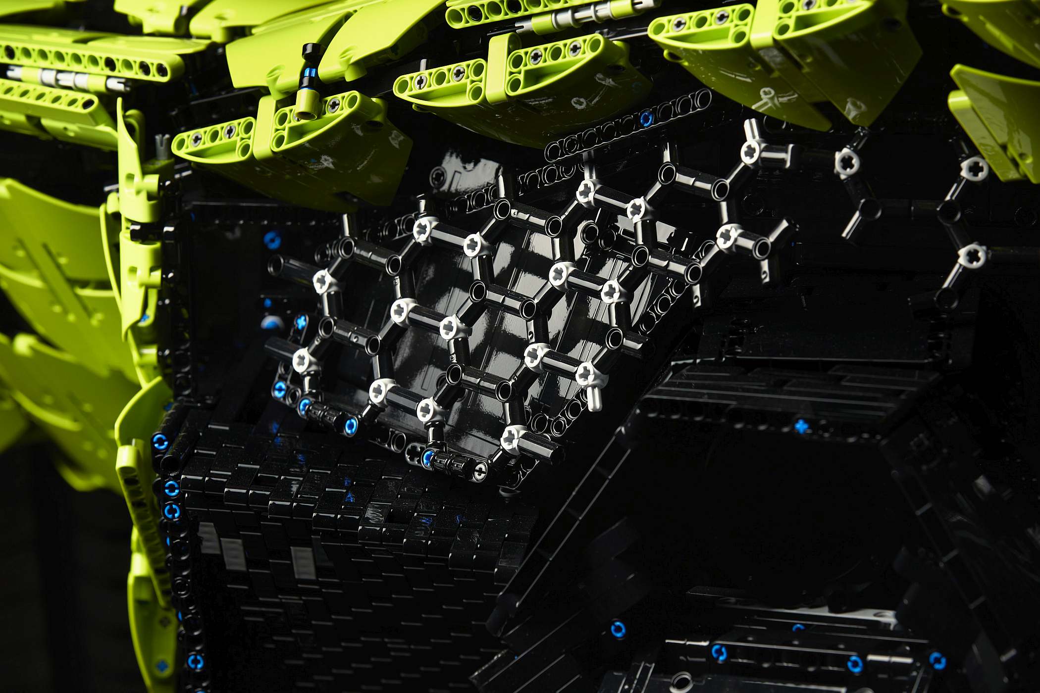 Com a colaboração entre os designers, engenheiros e técnicos de ambas as marcas foi possível fazer com que o modelo fosse uma réplica perfeita do Lamborghini Sián FKP 37, com detalhes replicados ao milímetro. O chassis do carro está coberto com um intrincado ‘tecido’ de elementos hexagonais de LEGO Technic, que se interligam para dar forma ao veículo. O design homenageia a forma geométrica de seis lados que tem um papel essencial na linguagem de design da Lamborghini, fazendo eco da icónica luz traseira hexagonal o supercarro desportivo italiano.