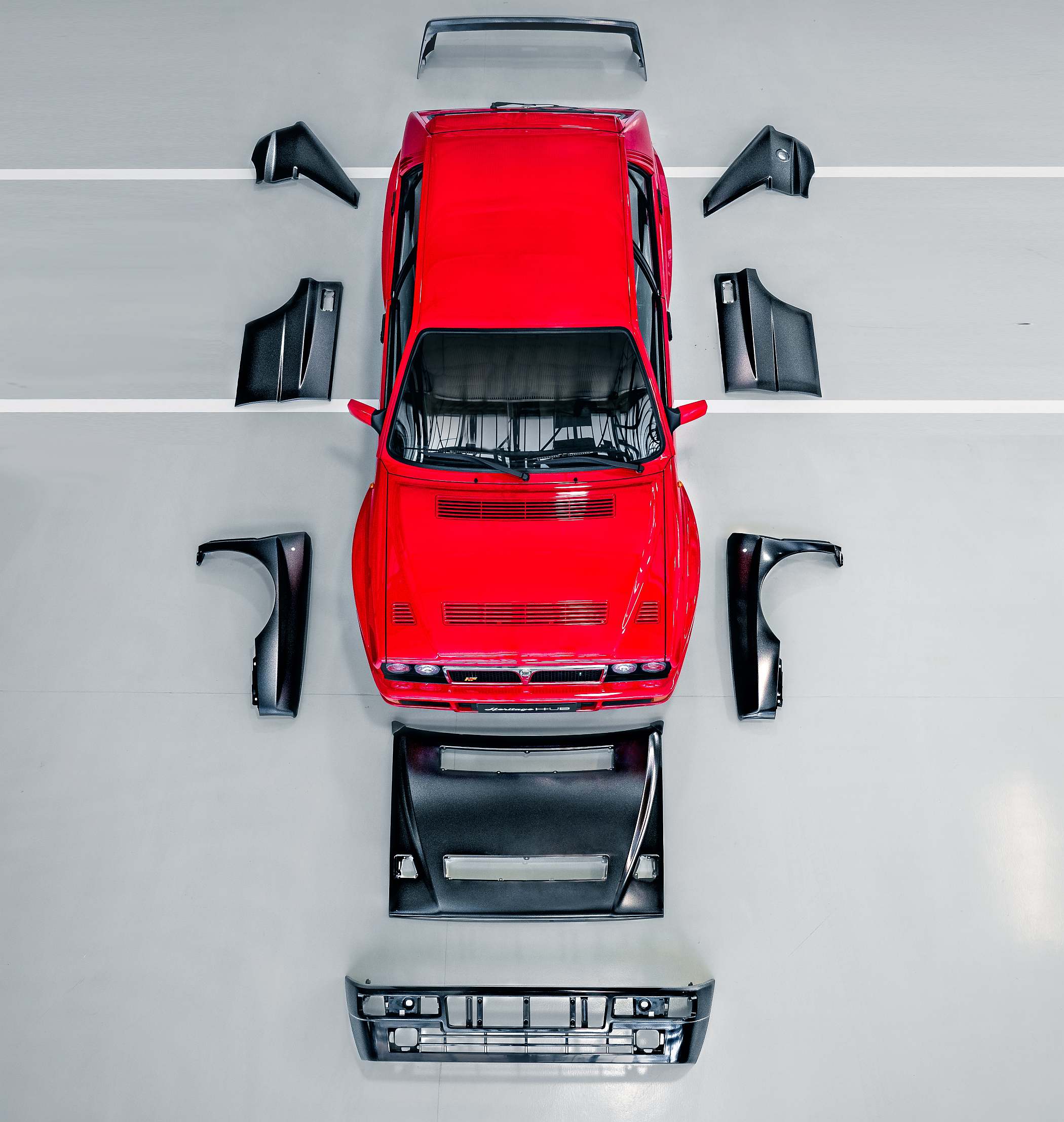 O projeto começou com para-choques dianteiros e traseiros para os Lancia Delta HF Integrale e Lancia Delta HF Integrale Evoluzione, continuando depois com as mesmas peças para o Alfa Romeo 147 GTA e com um prático conjunto de produtos especiais para cuidar de viaturas de época.