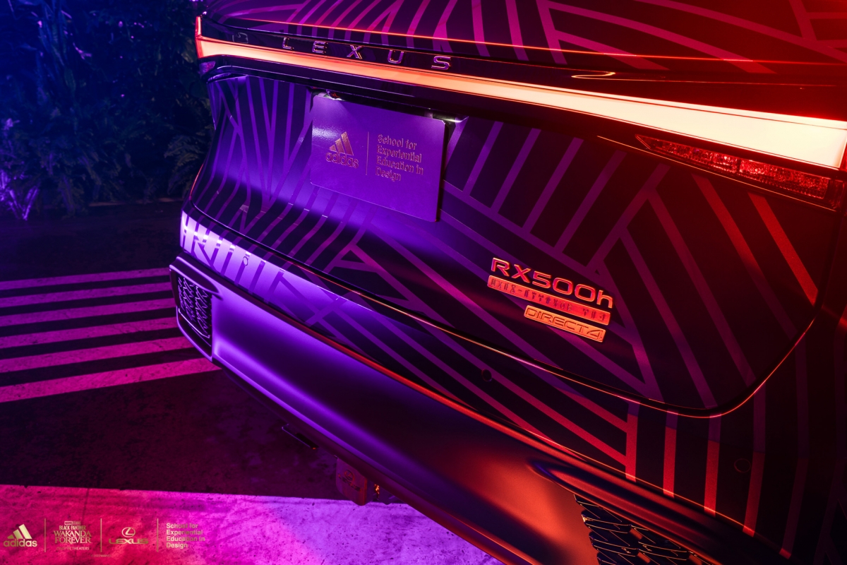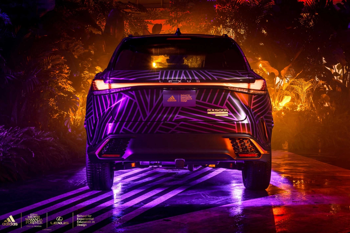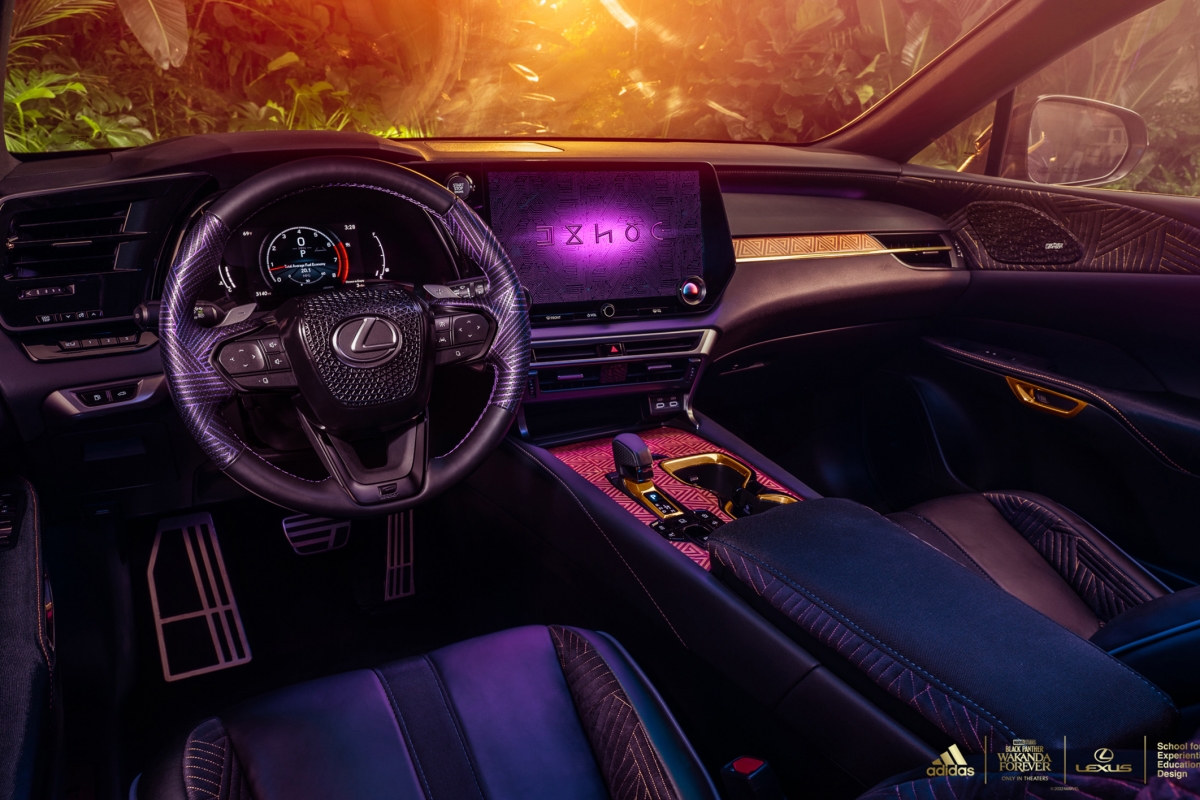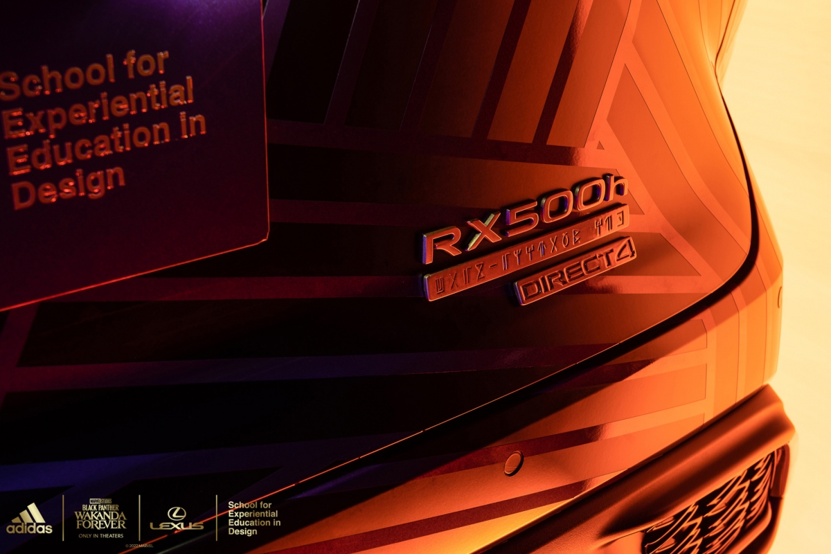 A versão personalizada do RX contará com design, texturas e materiais futuristas, impressão personalizada em ouro tribal Wakandiano adidas nos bancos, nas inserções do painel das portas e nas seções roxas do volante. A placa F SPORT da porta está traduzida no alfabeto de Wakanda e no volante está bordado “Wakanda Forever”.