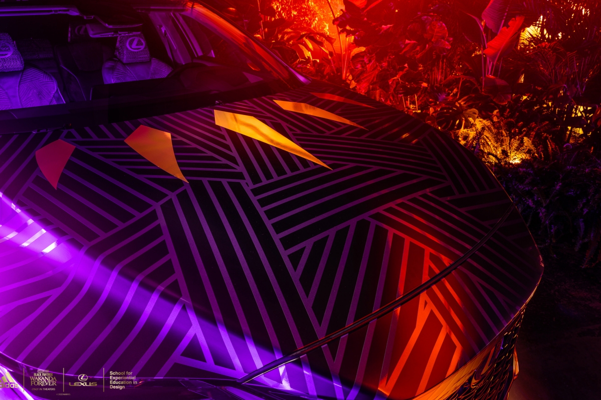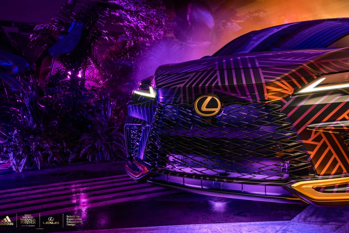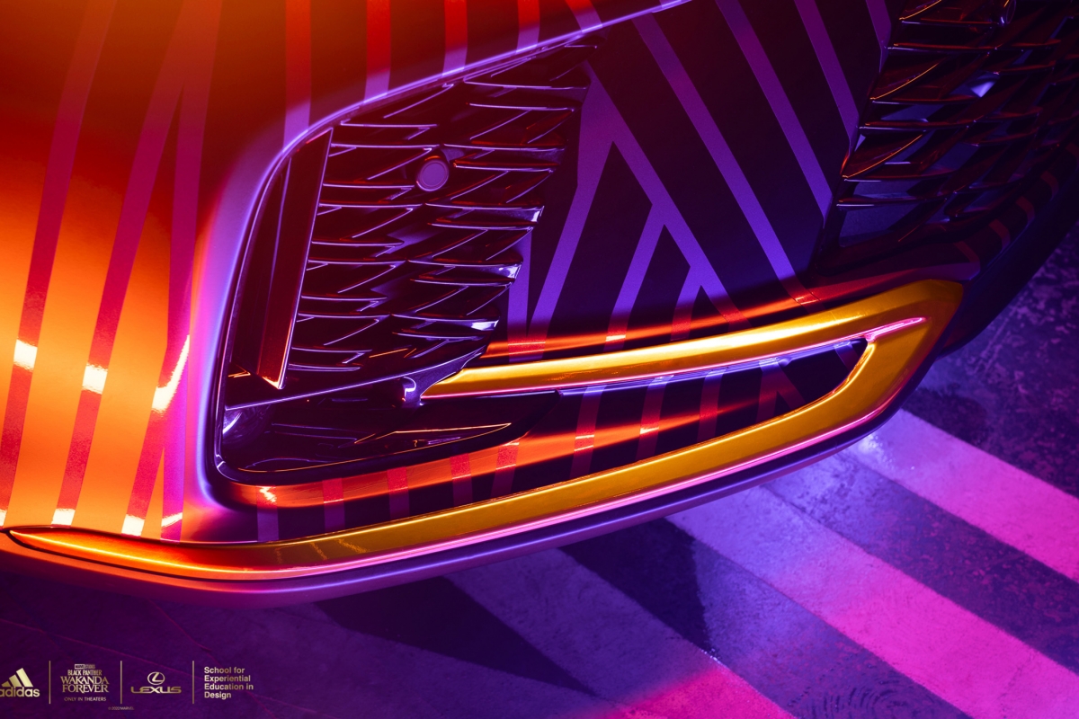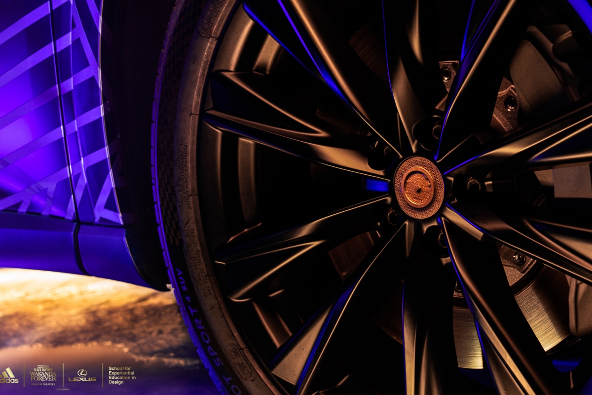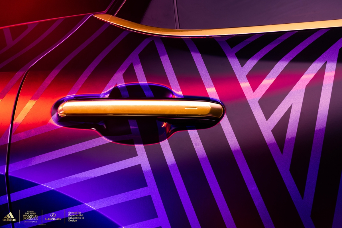 A versão personalizada do RX contará com design, texturas e materiais futuristas, impressão personalizada em ouro tribal Wakandiano adidas nos bancos, nas inserções do painel das portas e nas seções roxas do volante. A placa F SPORT da porta está traduzida no alfabeto de Wakanda e no volante está bordado “Wakanda Forever”.