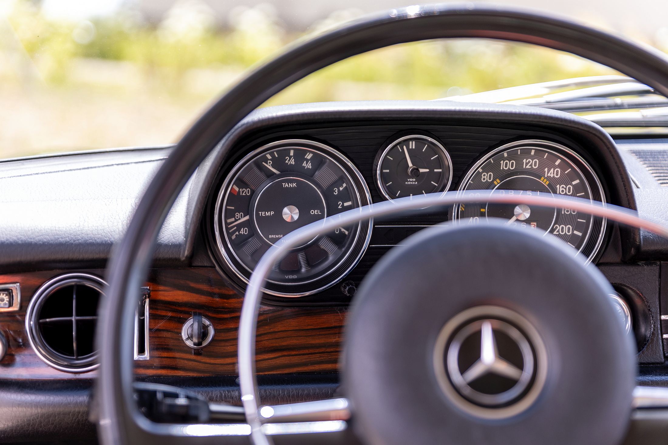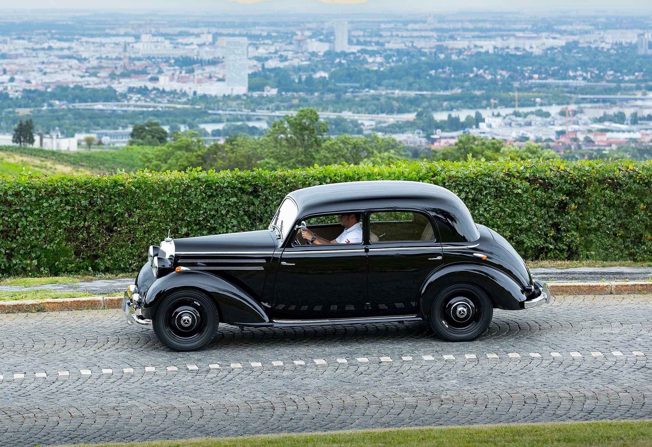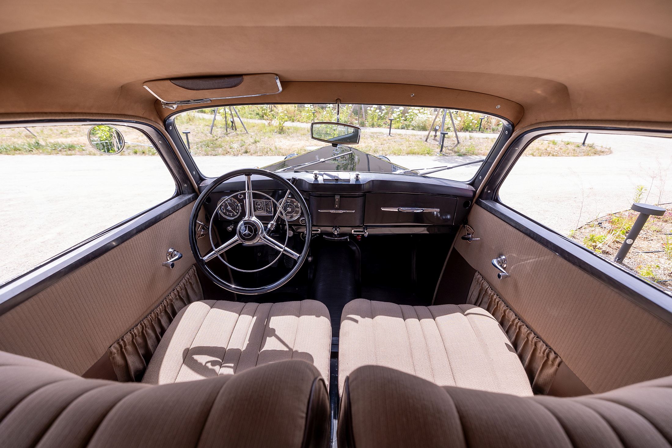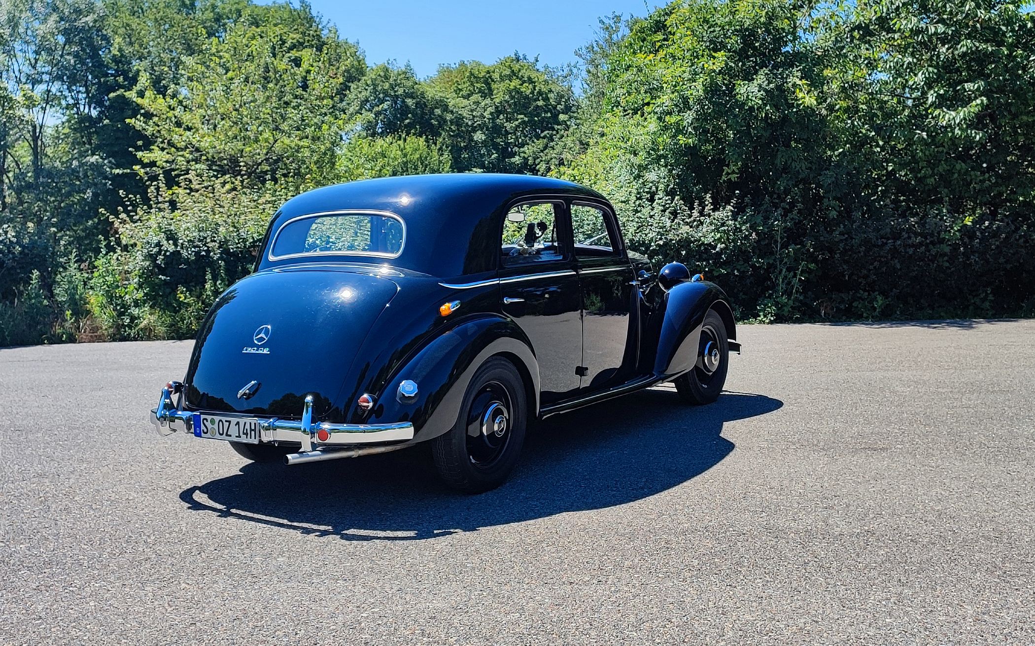 Lá à frente, longínqua no capot, está a estrela da Mercedes-Benz, impondo-se sempre no horizonte. Há uma aura mística com estes carros, sobretudo neste caso, que foi até o primeiro modelo da Mercedes-Benz a ser produzido (retomado, melhor dizendo) após a Segunda Guerra Mundial. A poderosa indústria automóvel alemã tinha sido anestesiada durante o grande conflito, mas mantinha os seus predicados intactos em termos de prestígio, conforto e refinamento.