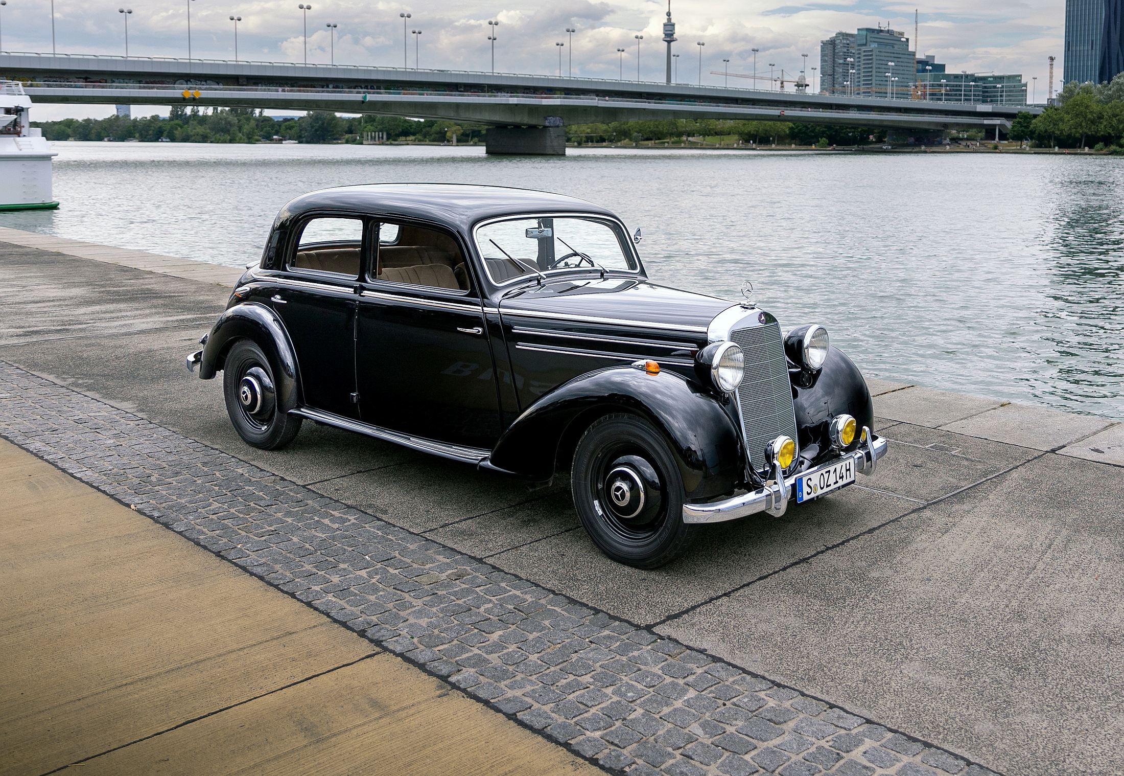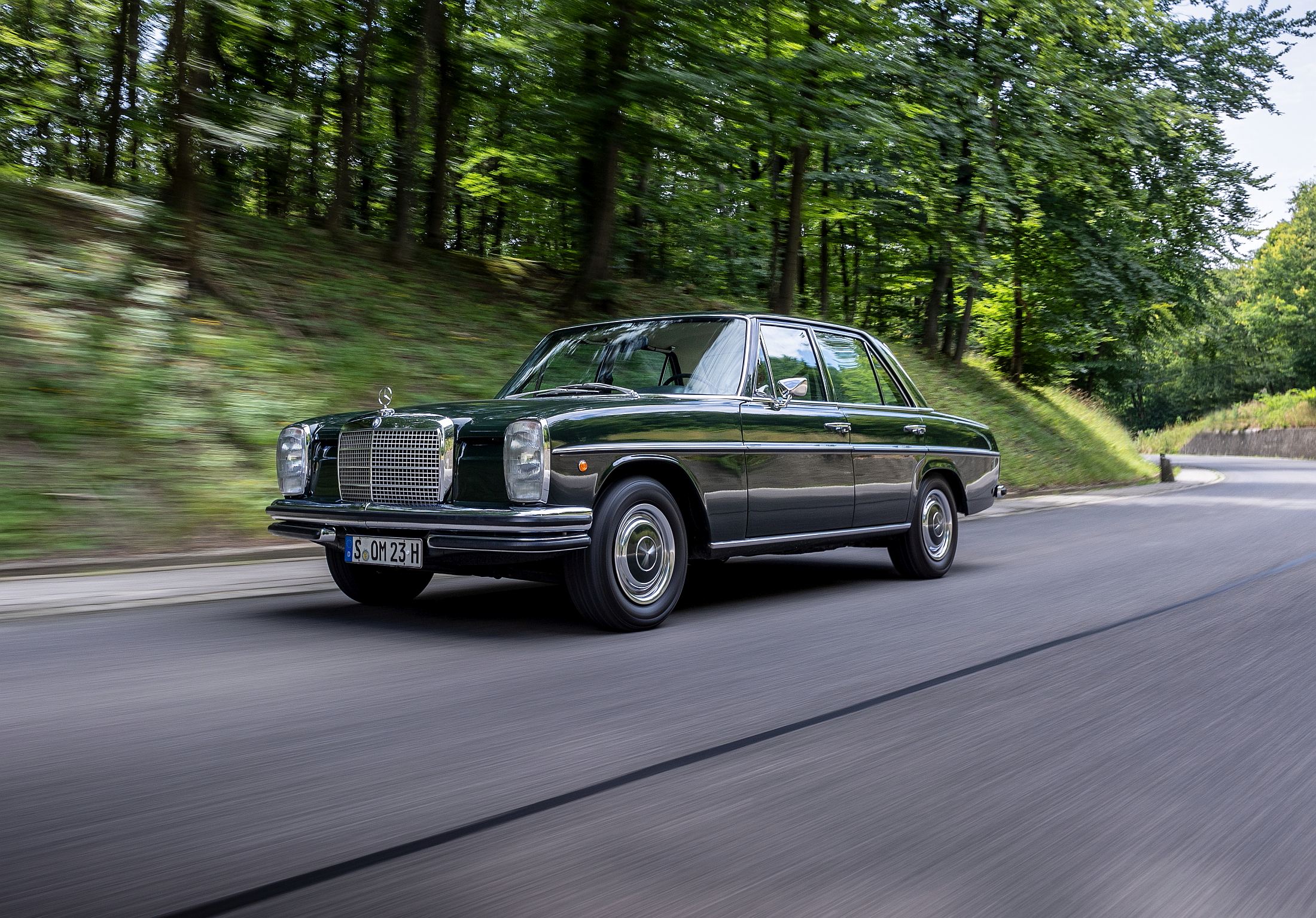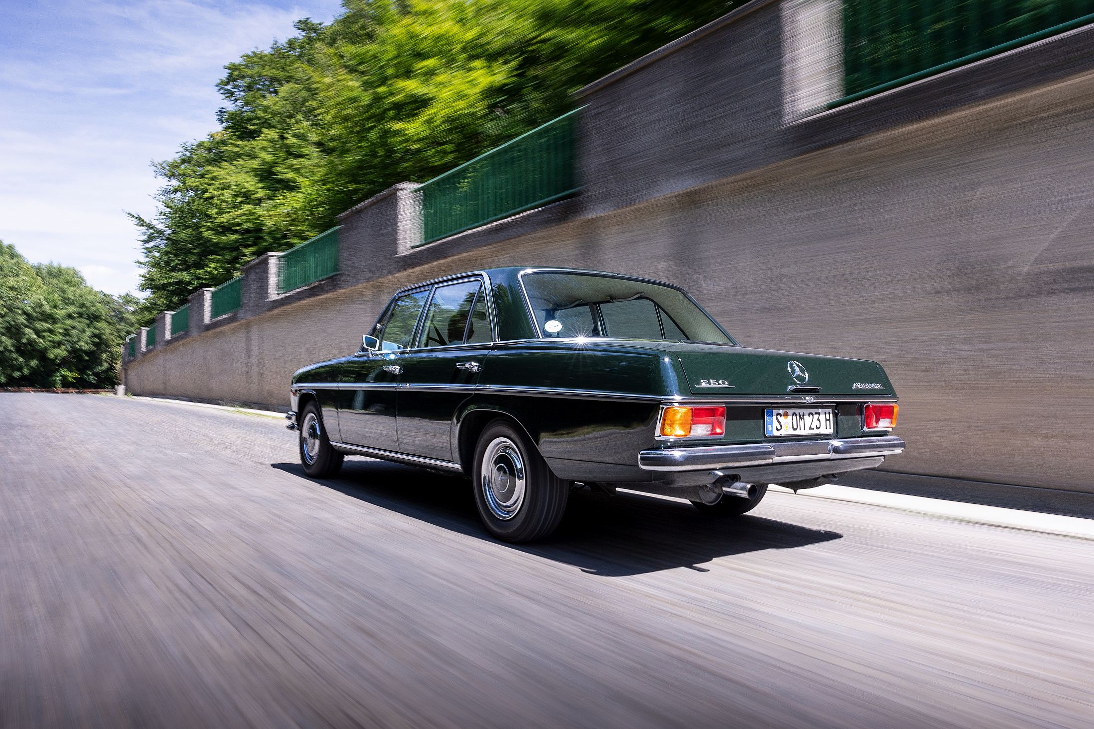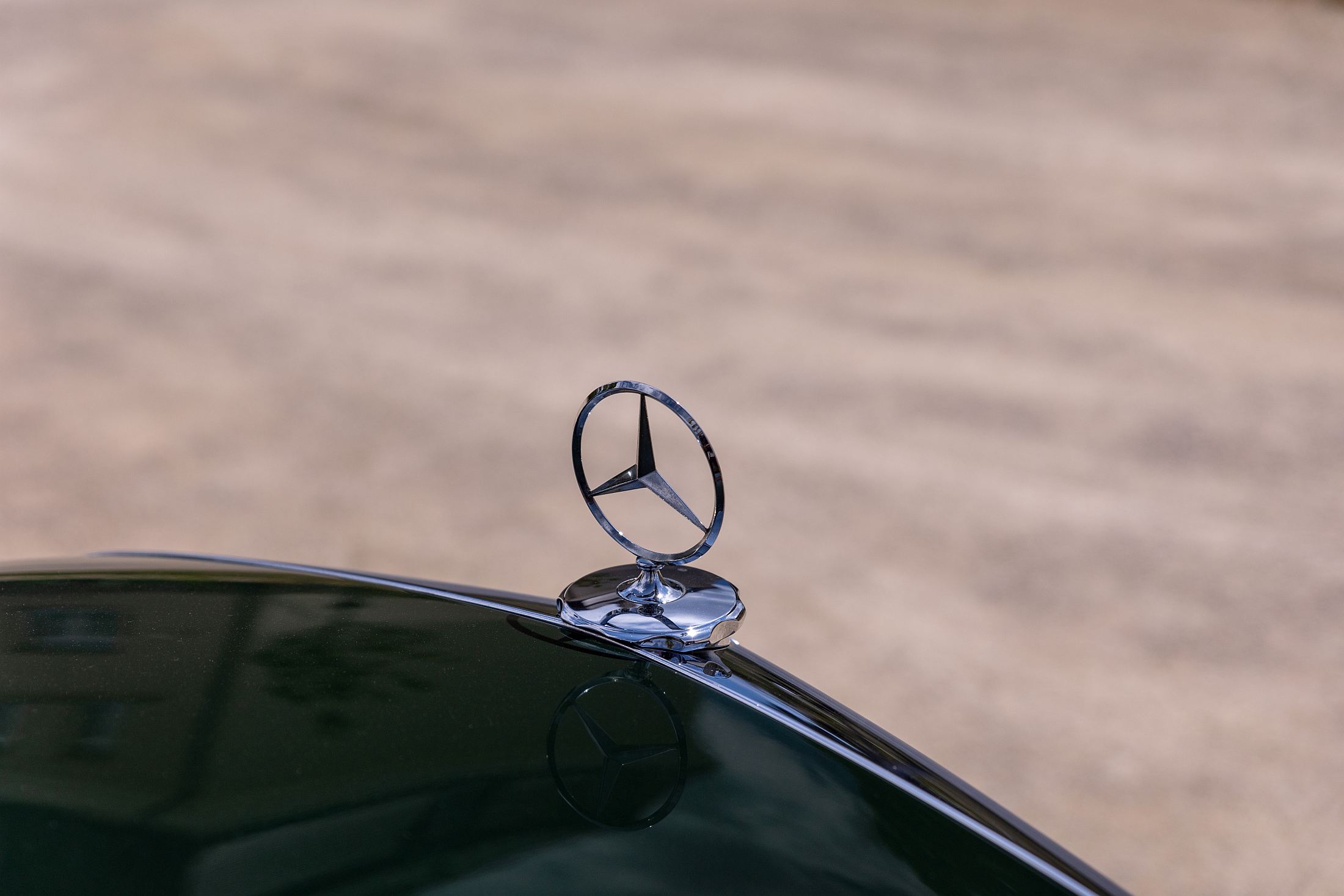 Lá à frente, longínqua no capot, está a estrela da Mercedes-Benz, impondo-se sempre no horizonte. Há uma aura mística com estes carros, sobretudo neste caso, que foi até o primeiro modelo da Mercedes-Benz a ser produzido (retomado, melhor dizendo) após a Segunda Guerra Mundial. A poderosa indústria automóvel alemã tinha sido anestesiada durante o grande conflito, mas mantinha os seus predicados intactos em termos de prestígio, conforto e refinamento.