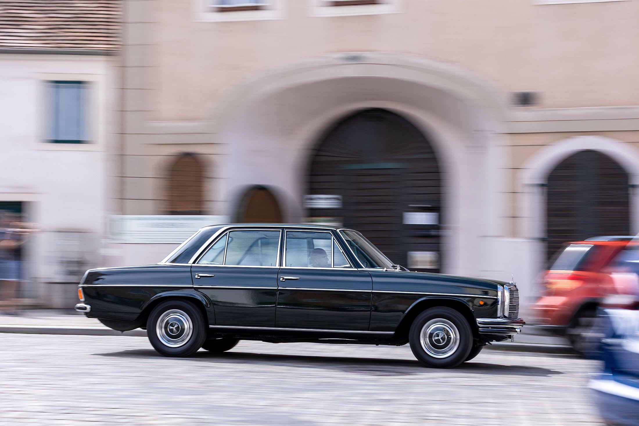 Outros modelos presentes na ação foram o W110, conhecido por ‘Finntail’ pelas abas na secção traseira, ou o 500 E (W124), bem mais recente e com um ADN desportivo muito próprio em antecipação ao que viria a ser os genes da AMG.