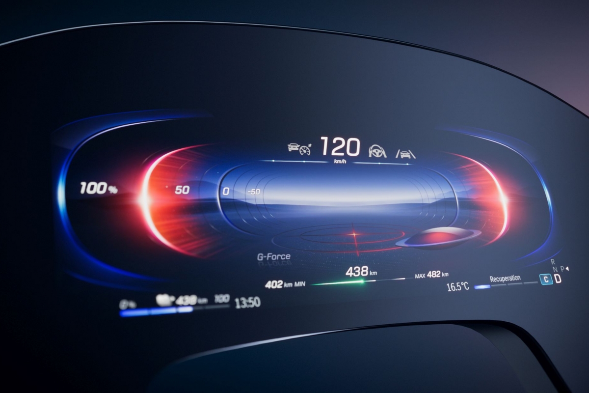 Sendo adaptado ao EQS, futuro elétrico da Mercedes-Benz, o sistema MBUX Hyperscreen revela ainda funções específicas e grafismo dedicado e inovador.