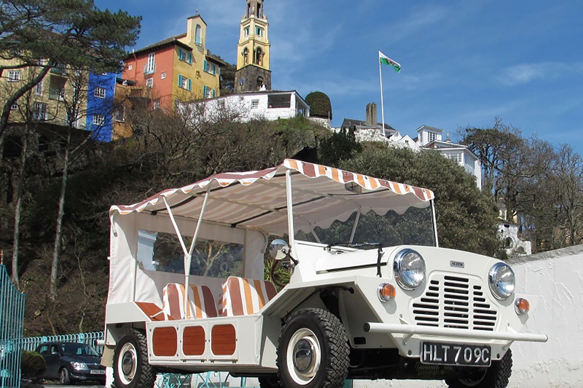 Nessa prisão misteriosa, os serviços de táxis eram assegurados por Mini Moke, todos pintados de branco, com a lona e os estofos com padrões a condizer. Devido a um erro de produção, foi revelada a verdadeira matrícula de um dos Moke utilizados na série, que é o exemplar que está presente neste artigo.