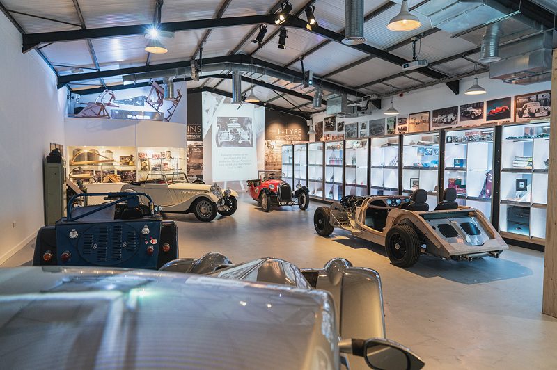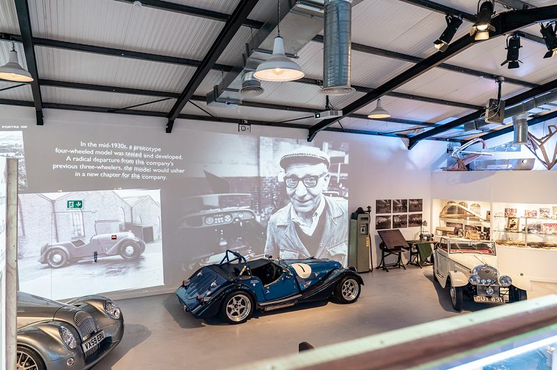 Quatro projectores emitem várias informações que podem ser visualizadas nas paredes. Vários são, também, os troféus expostos, assim como no centro estão sete modelos da marca. Para começar, está presente um dos primeiros automóveis da marca, um Morgan Runabout de 1910, o Morgan 4-4 de 1938 que pertenceu ao próprio H. F. S. Morgan, um Plus 8 de 1977 preparado para competição de Graham e Oliver Bryant, um Aeromax dos apenas 100 produzidos e, para terminar, o protótipo EV3.