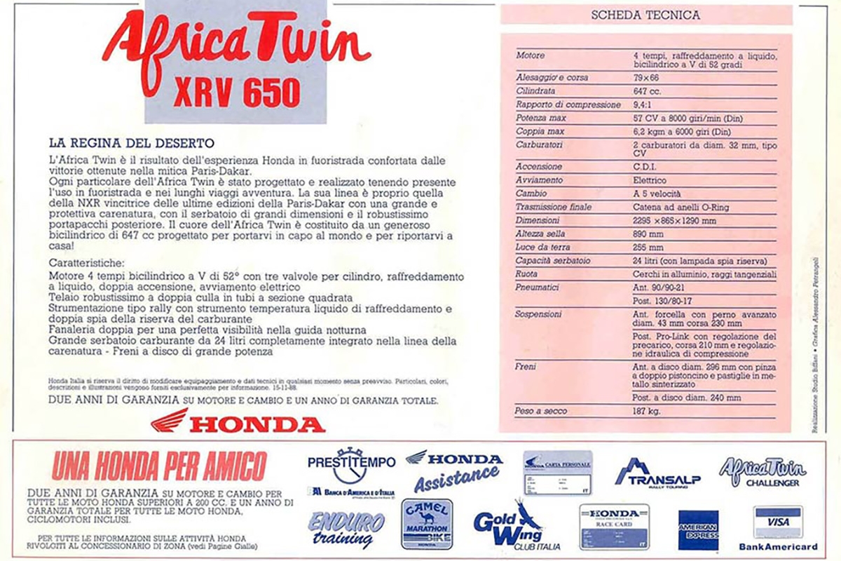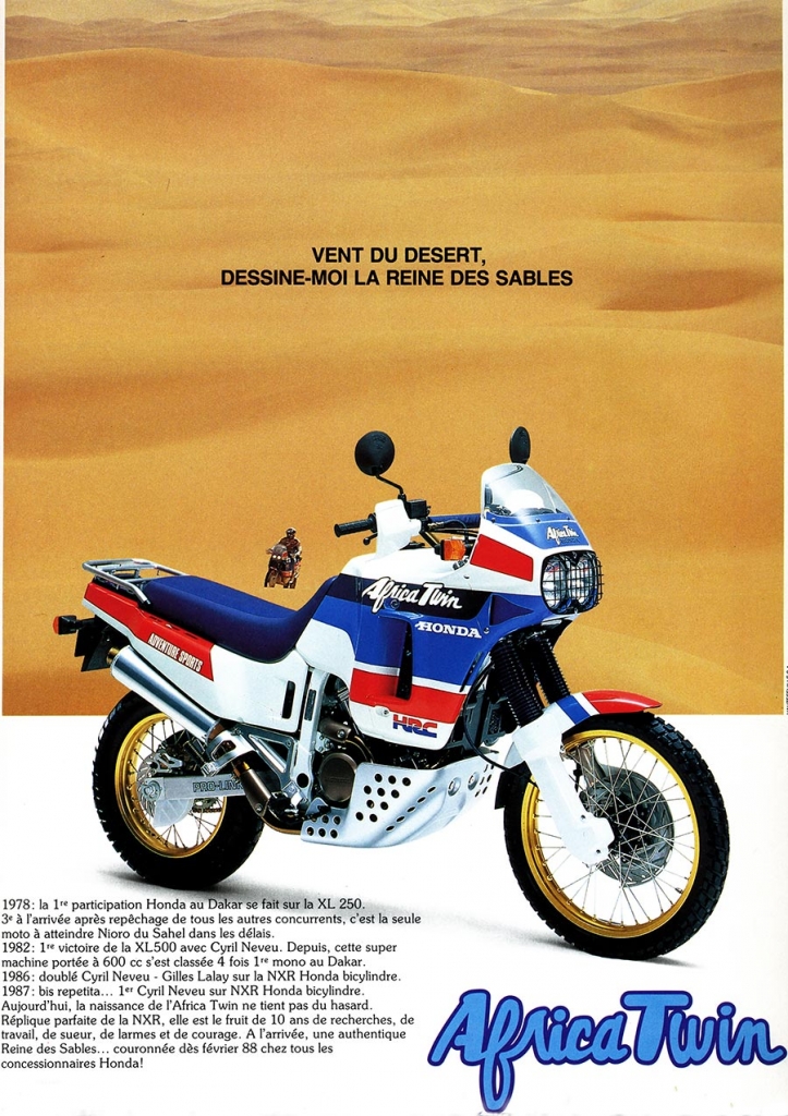 No Japão rapidamente pensaram em lançar uma moto, baseada na NXR, mas menos radical em termos de comportamento, de materiais usados, mas sem nunca abdicar dos genes da competição e do espírito da aventura que a caraterizava e fazia sonhar tanta gente por esse mundo fora. Foi aí que surgiu a primeira “Honda Africana” que qualquer mortal podia ter, fosse para competir, viajar ou mesmo fazer dela uma moto capaz de utilizar no dia-a-dia.