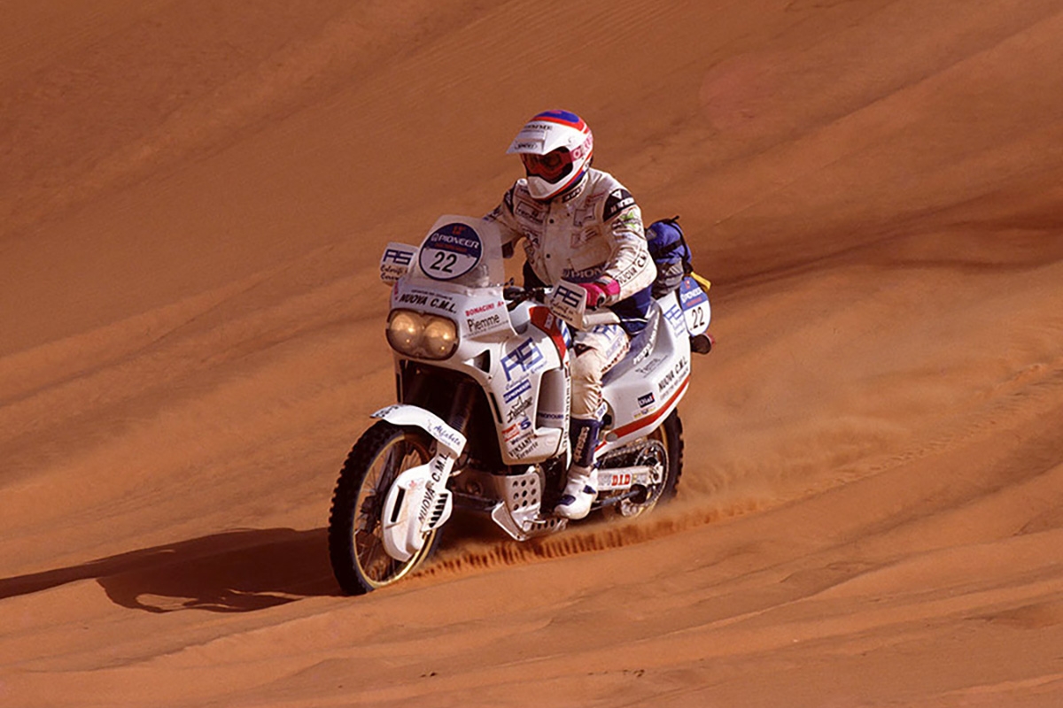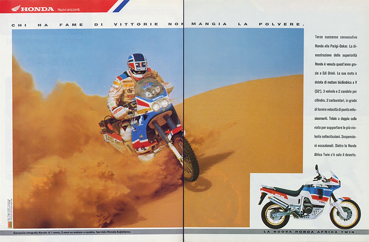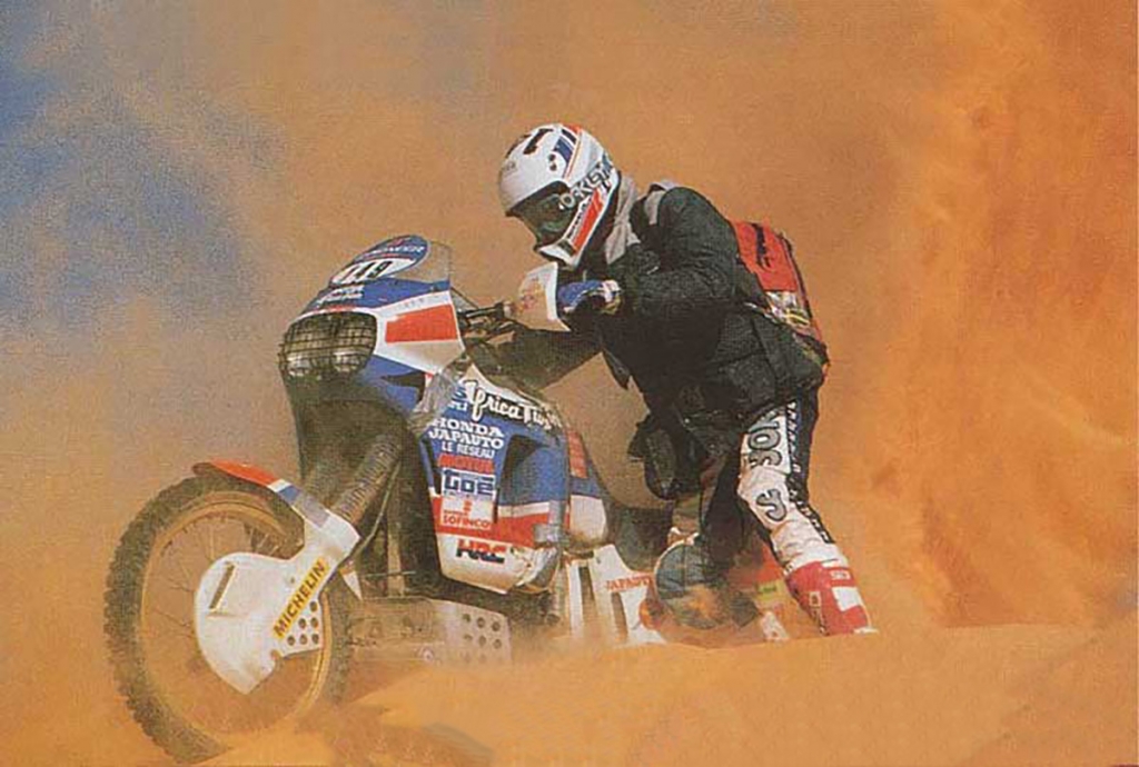 Assim, Honda estudou bem a lição e a novíssima NXR 750 era o topo da competição, de tal modo que ganhou também em 87 (pelo mesmo Neveau), em 88 por Orioly e 89 por Lalay, sendo que em 90 o sucesso da Honda foi interrompido pela Cagiva Elefant, mas vamos focar-nos na NXR 750, verdadeira mentora da Africa Twin, moto escolhida para esta crónica.