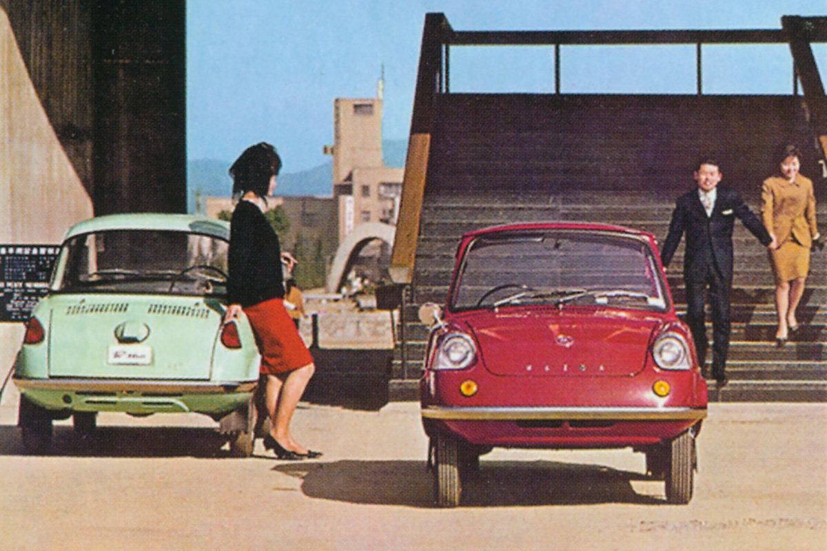 Os esquemas de cores progressivas remontam aos primeiros modelos da Mazda. O Mazda R360 Coupé, o primeiro automóvel ligeiro produzido em série pela marca, chegou ao mercado em 1960 com uma seleção de cores refrescantes, incluindo tons como verde-menta, azul-celeste e vermelho-vivo, transmitindo dinamismo e oferecendo uma variedade de tons. O modelo incluía ainda algumas opções a duas cores, no que era uma raridade entre os micro-carros da época.