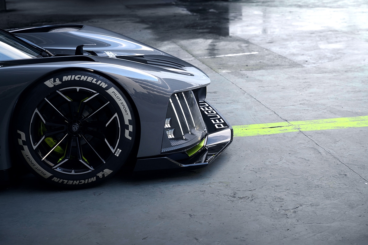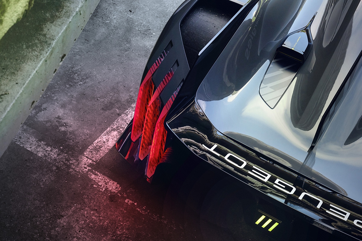 Na equipa de Design da Peugeot há muitos fãs de corridas de resistência e, em especial, das 24 Horas de Le Mans. Tendo estado lá como espectadores, sabem que à noite, assistindo de fora da pista, os sinais distintivos dos automóveis não são muitos visíveis. Alguns veículos podem ser reconhecidos pela acústica dos motores, mas, em muitos lugares, a presença visual limita-se, frequentemente, a elementos de luz que se desvanecem durante a noite.”