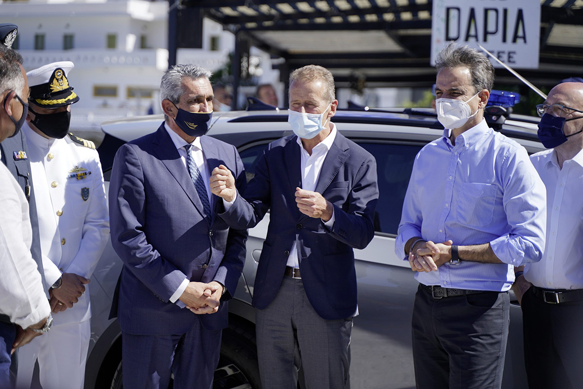 Para marcar o início oficial da transformação da ilha, o CEO da Volkswagen, Herbert Diess, e o Primeiro-Ministro grego, Kyriakos Mitsotakis, visitaram Astipalea.