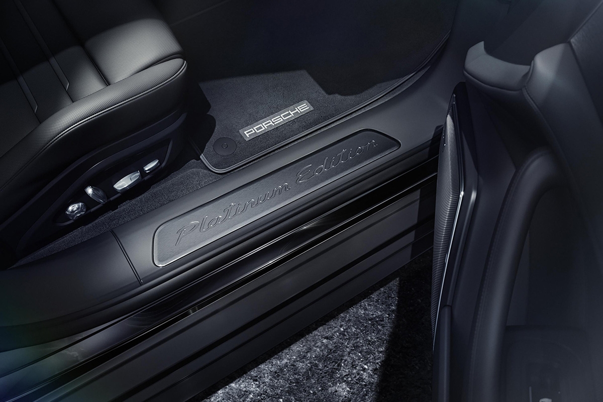 Opções com muita procura e elevados benefícios para os clientes fazem parte do equipamento de série da versão Platinum Edition. A lista inclui a suspensão pneumática adaptativa Porsche Active Suspension Management (PASM), espelhos retrovisores exteriores com escurecimento automático, faróis LED matrix com Porsche Dynamic Light System Plus (PDLS Plus), teto panorâmico, Park Assist com câmara de marcha-atrás e, nos modelos híbridos, carregador de bordo AC com 7,2 kW de potência.