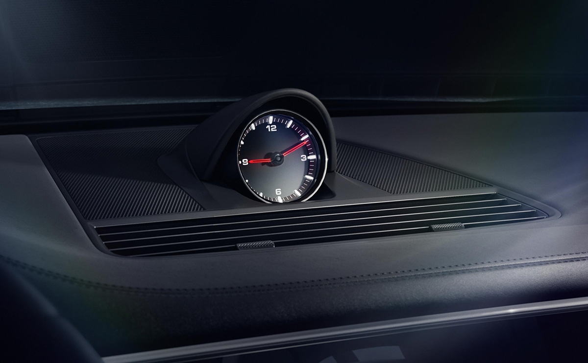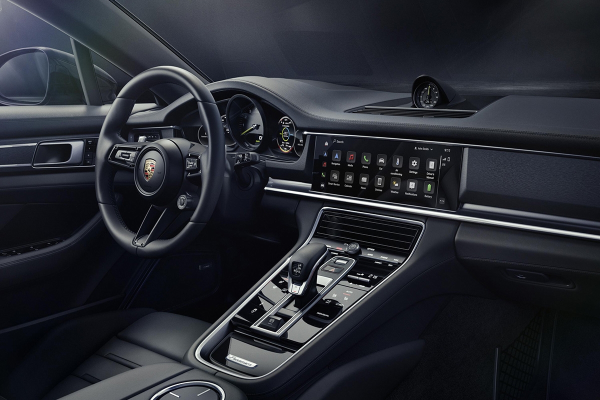 Os apontamentos luxuosos continuam no interior: volante desportivo GT e direção assistida Plus, Assistente de Mudança de Faixa, portas com soft-close e Acesso Comfort, bancos dianteiros comfort com ajuste elétrico em 14 vias e pacote memória, bancos traseiros aquecidos, sistema de som BOSE Surround, pacote interior em alumínio escovado em preto e escudo Porsche nos apoios de cabeça.