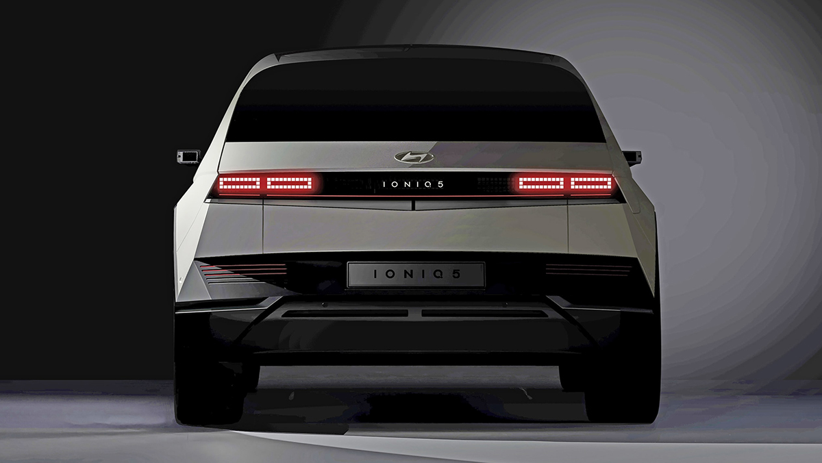 Esteticamente, o Ioniq 5 é uma evolução do 45 Concept mostrado na edição de 2019 do Salão de Frankfurt.