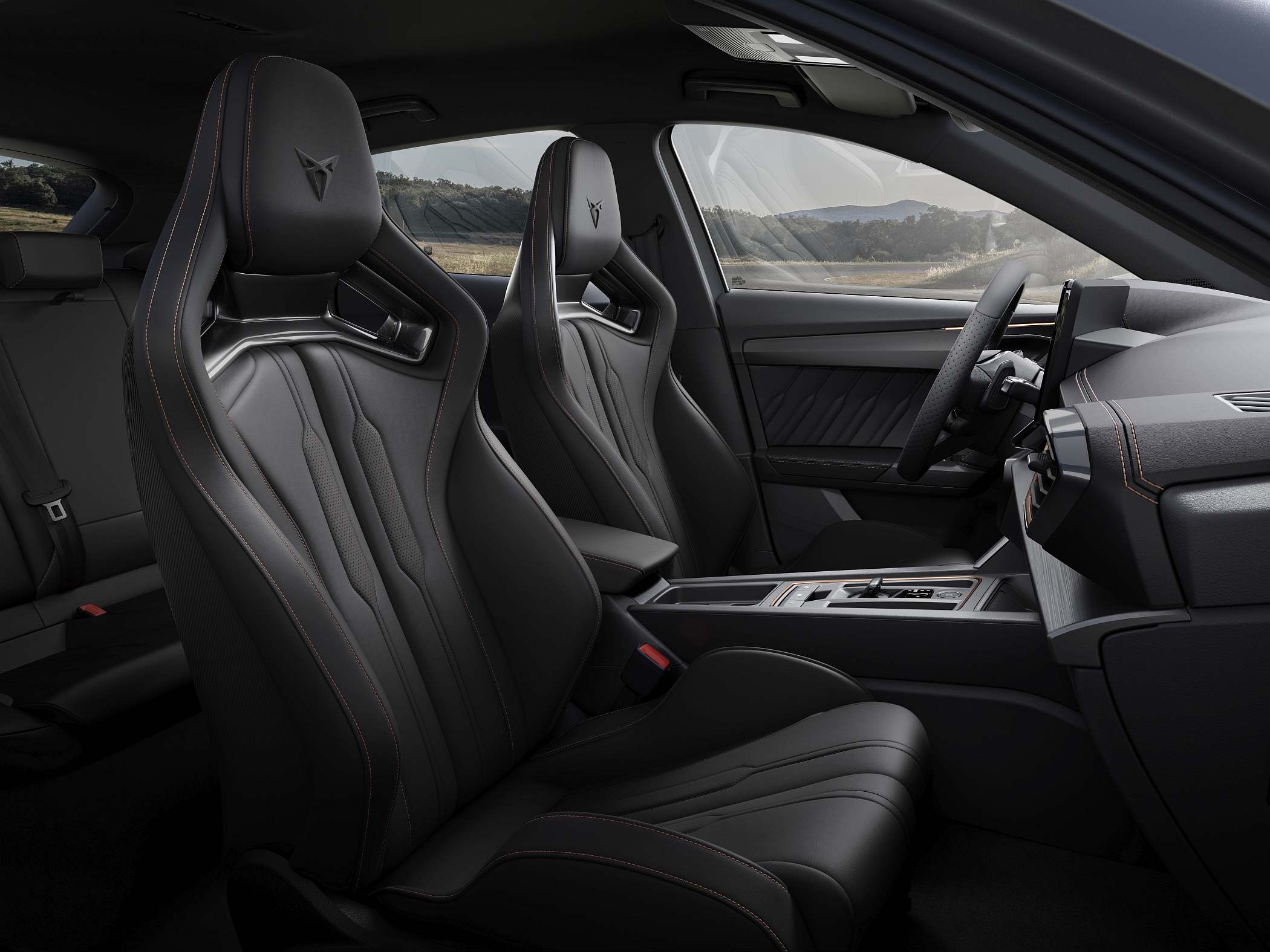 A aceleração é pronta e impulsiva, colando-nos ao banco enquanto o velocímetro cresce na sua ordem, garantindo que os 390 CV são uma presença constante. Porém, se a potência é eximiamente transferida para o asfalto, o que mais impressiona neste CUPRA VZ5 – apesar do tempo curto do contacto – foi a sua capacidade de entrosamento com o condutor, que beneficia de um vasto manancial de informações provenientes dos diferentes comandos do veículo.