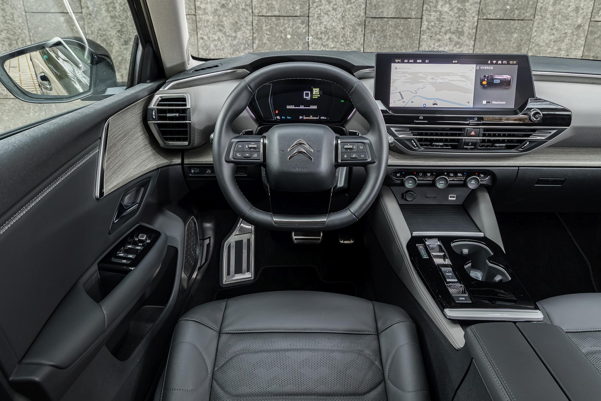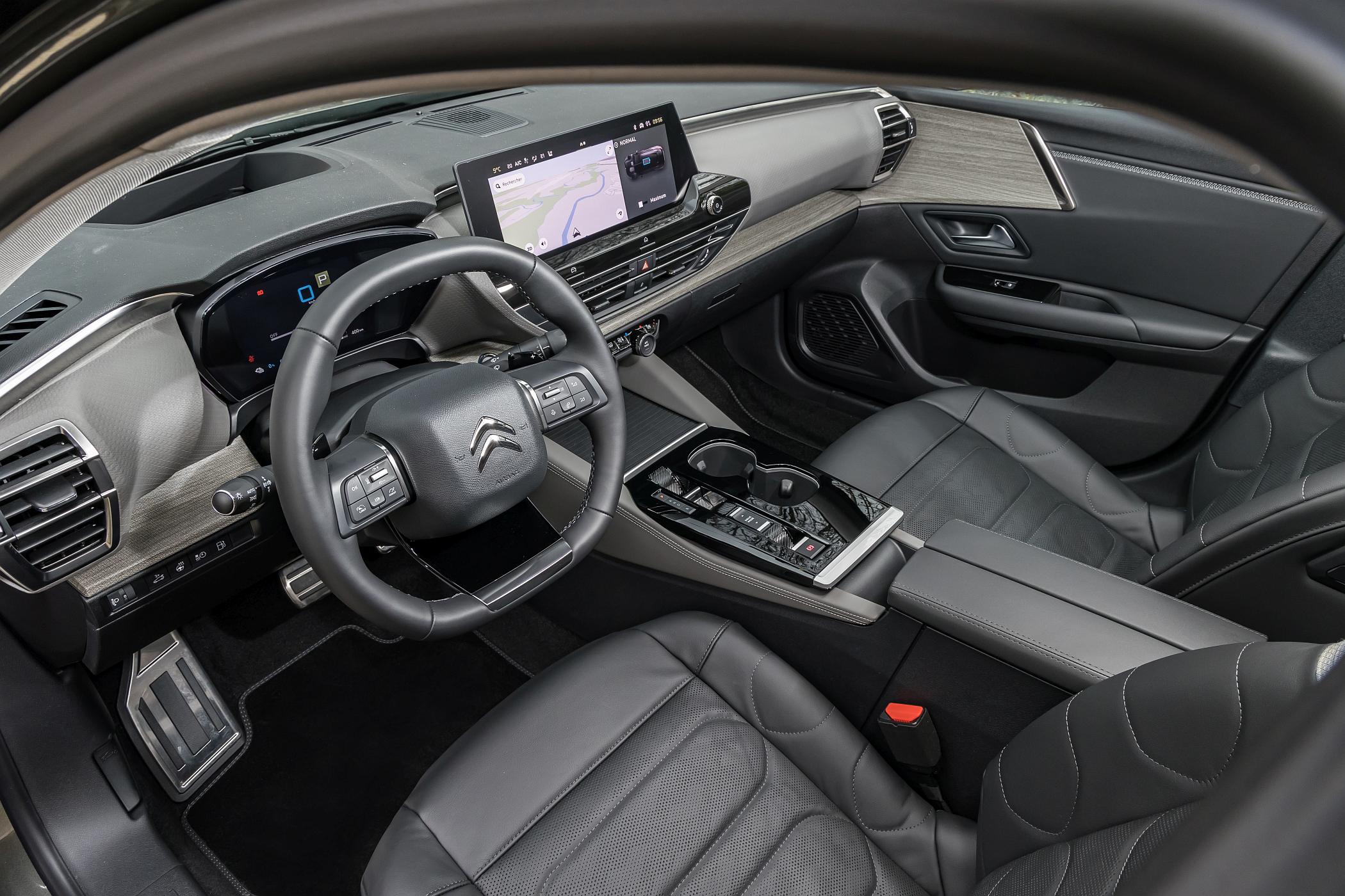 Algo que perpassa ao longo de todo o modelo é o seu conceito de lounge interior com os comandos apenas essenciais junto ao condutor, não faltando revestimentos trabalhados com menção ao conceito do ‘double chevron’ por exemplo nos painéis das portas e tablier. Além disso, a atenção ao detalhe verifica-se também nos acabamentos e nos materiais utilizados, de muita qualidade. Os espaços de arrumação foram outra das preocupações da Citroën, dispondo de até 29 litros a bordo para arrumar pequenos objetos.