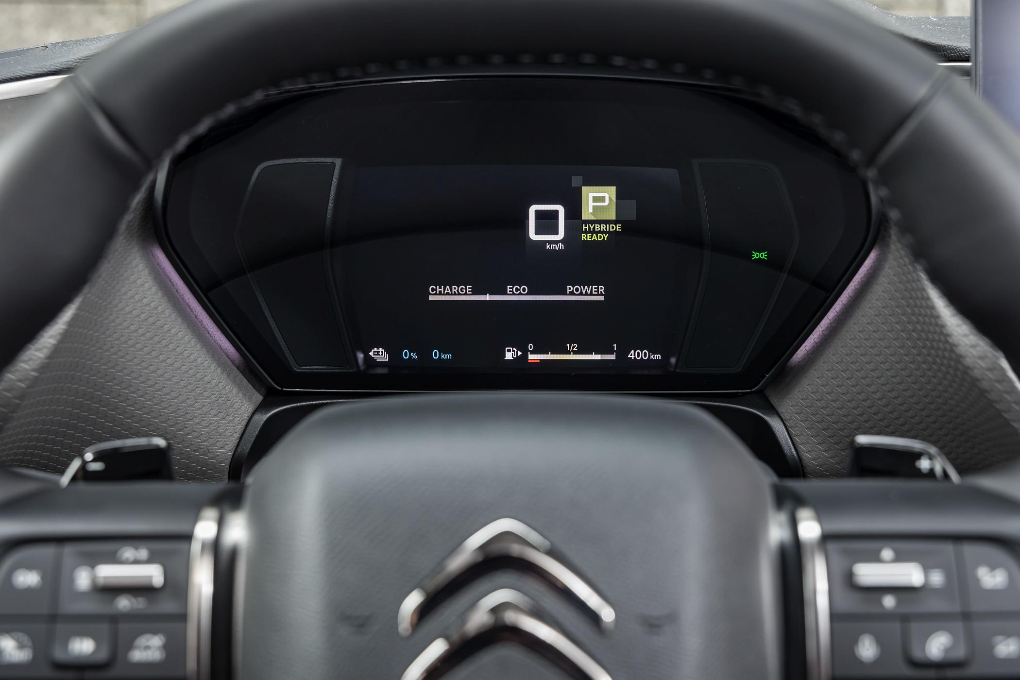 Invariavelmente, o C5 X Plug-in oferece um compromisso focado na eficiência – com exceção do modo de condução ‘Sport’ -, pelo que a interação entre os motores elétrico e térmico funciona de forma ajustada para o tipo de condução e para o tipo de piso, procurando sempre dar primazia ao sistema elétrico para a locomoção.