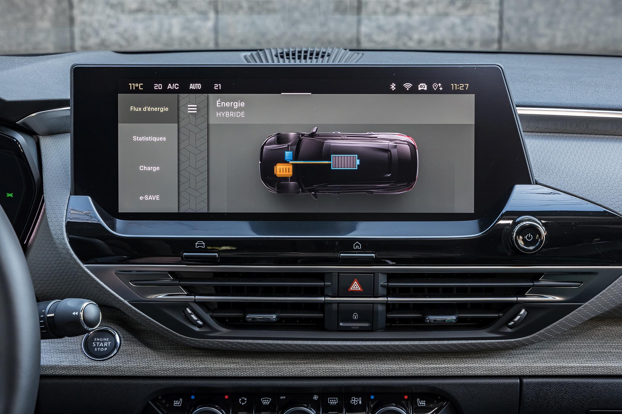 Ao centro, o ecrã tátil de 12″ beneficia de um novo sistema de infoentretenimento inspirado nos widgets dos smartphones, dispondo de navegação conectada 3D, reconhecimento de comandos por voz e atualizações ‘Over the Air’ do sistema para manter as funcionalidades atualizadas ao longo do tempo. A conectividade com os sistemas operativos Android Auto e Apple CarPlay sem fios está também assegurada. Nem sempre a interação é perfeita, parecendo, por vezes, responder com algum atraso aos comandos do dedo, mas a visualização do ecrã é ótima.