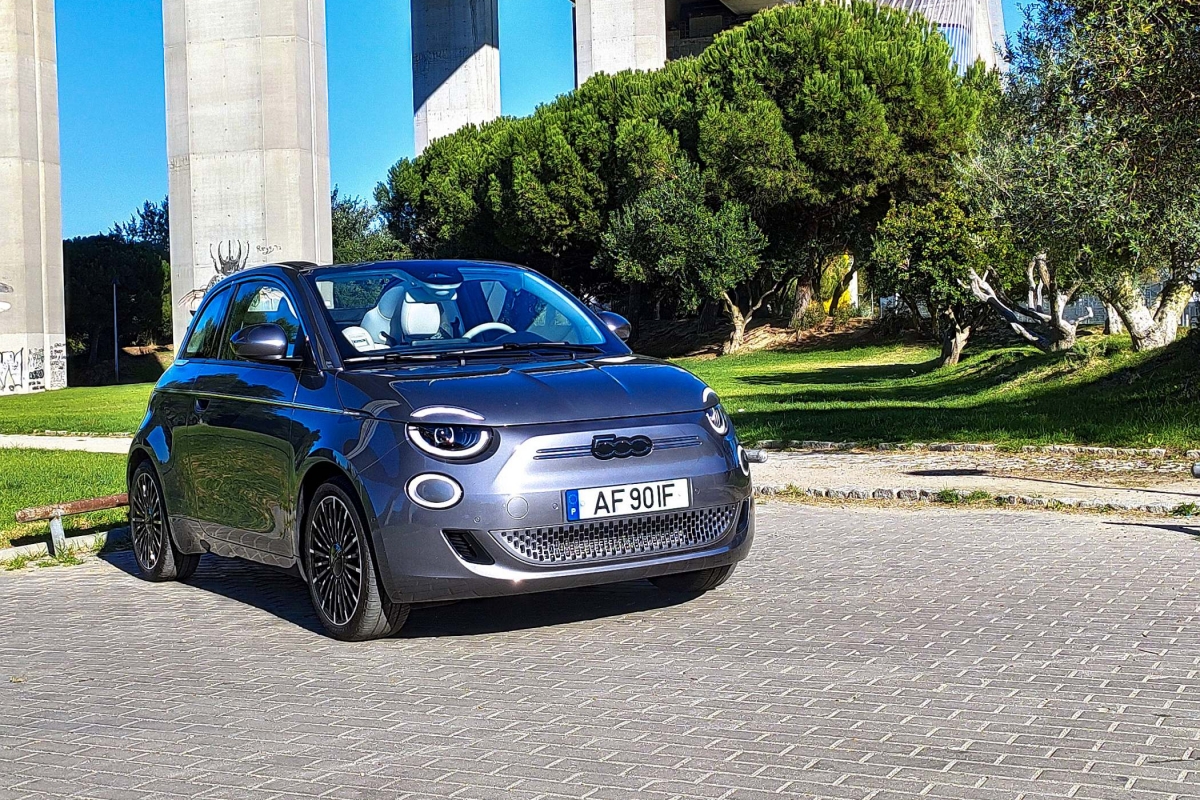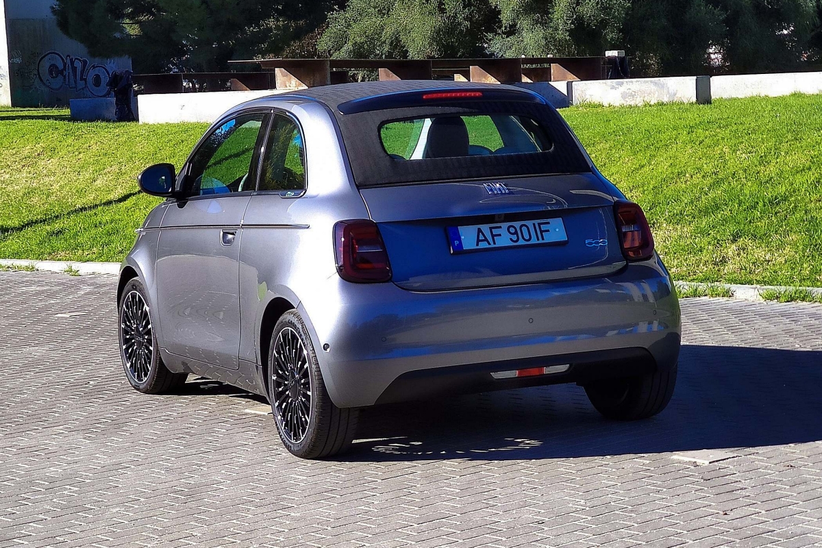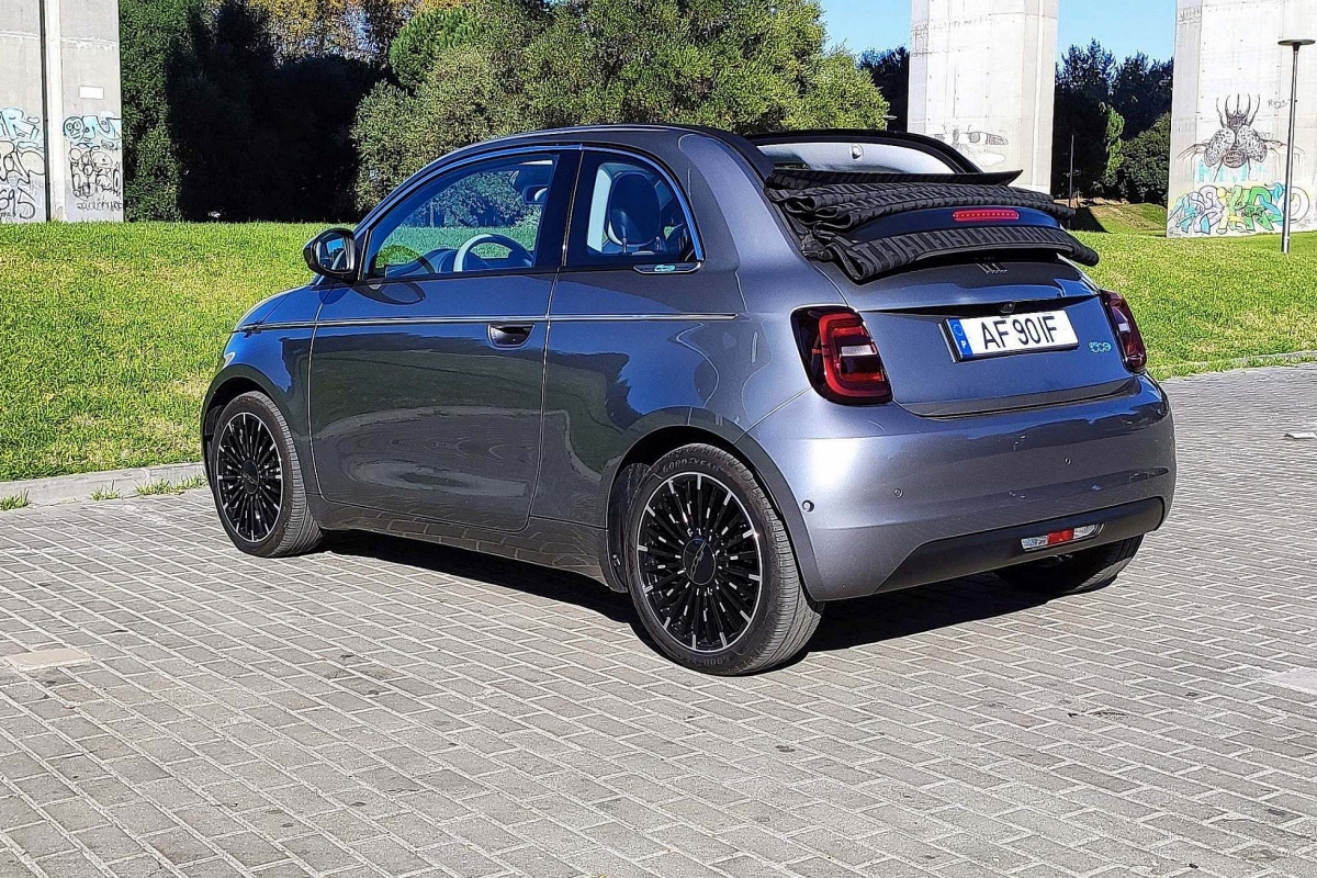 Por outro lado, fruto da nova plataforma e do baixo centro de gravidade proporcionado pela bateria, o 500e denota estabilidade e segurança em curva, mesmo que não seja propriamente dado a excessos. É sóbrio e robusto, com um bom pisar, a que se junta também uma boa insonorização – quando a capota em lona está fechada, obviamente.