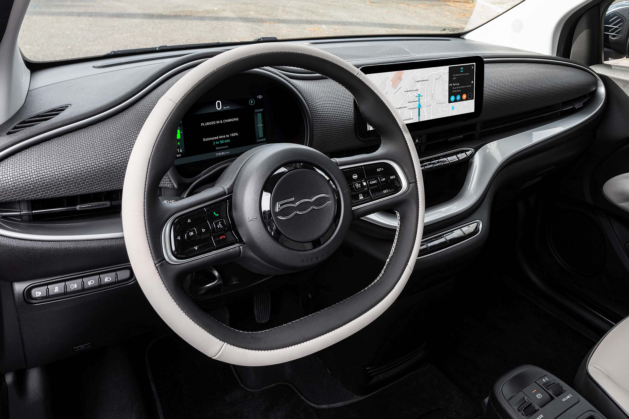 Já no interior, sobressai o visual moderno, com painel de instrumentos digital de 7.0 polegadas a que se junta um ecrã tátil central de 10.25 polegadas, a partir da qual é possível configurar praticamente todas as funcionalidades tecnológicas graças ao novo sistema de infoentretenimento Uconnect 5 (compatível com Android Auto e Apple CarPlay). Além disso, é possível também configurar os horários dos carregamentos e tirar partido de funcionalidades como a navegação. O mapa de navegação em 3D pode ser visualizado também no painel de instrumentos de 7.0”. Para simplificar ao máximo a interação, um sistema de reconhecimento de voz em linguagem natural permite interagir com a viatura dizendo “Hey, Fiat”.