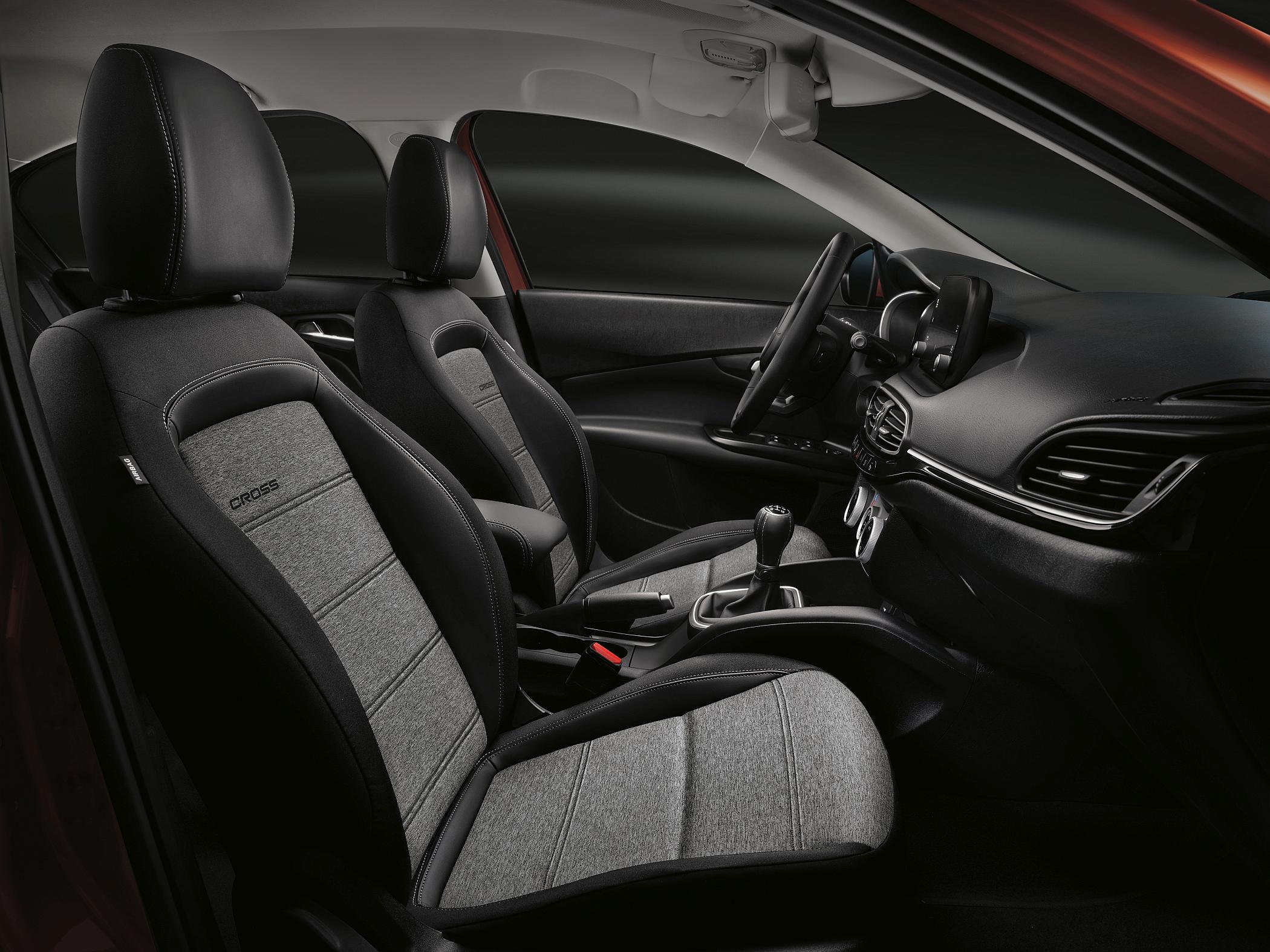 No interior, a sobriedade de construção e de aparência é conjugada pela funcionalidade e pela correta disposição de comandos, com domínio dos plásticos mais duros (de boa aparência, note-se), ainda que com algumas benesses como os revestimentos macios ao toque no tablier, por exemplo. Os bancos contam com padrão específico com inscrições ‘Cross’ nas costas dos bancos, enquanto o volante é igualmente novo, sendo agora mais compacto para aquilo que a Fiat apelida de mais desportivo.
