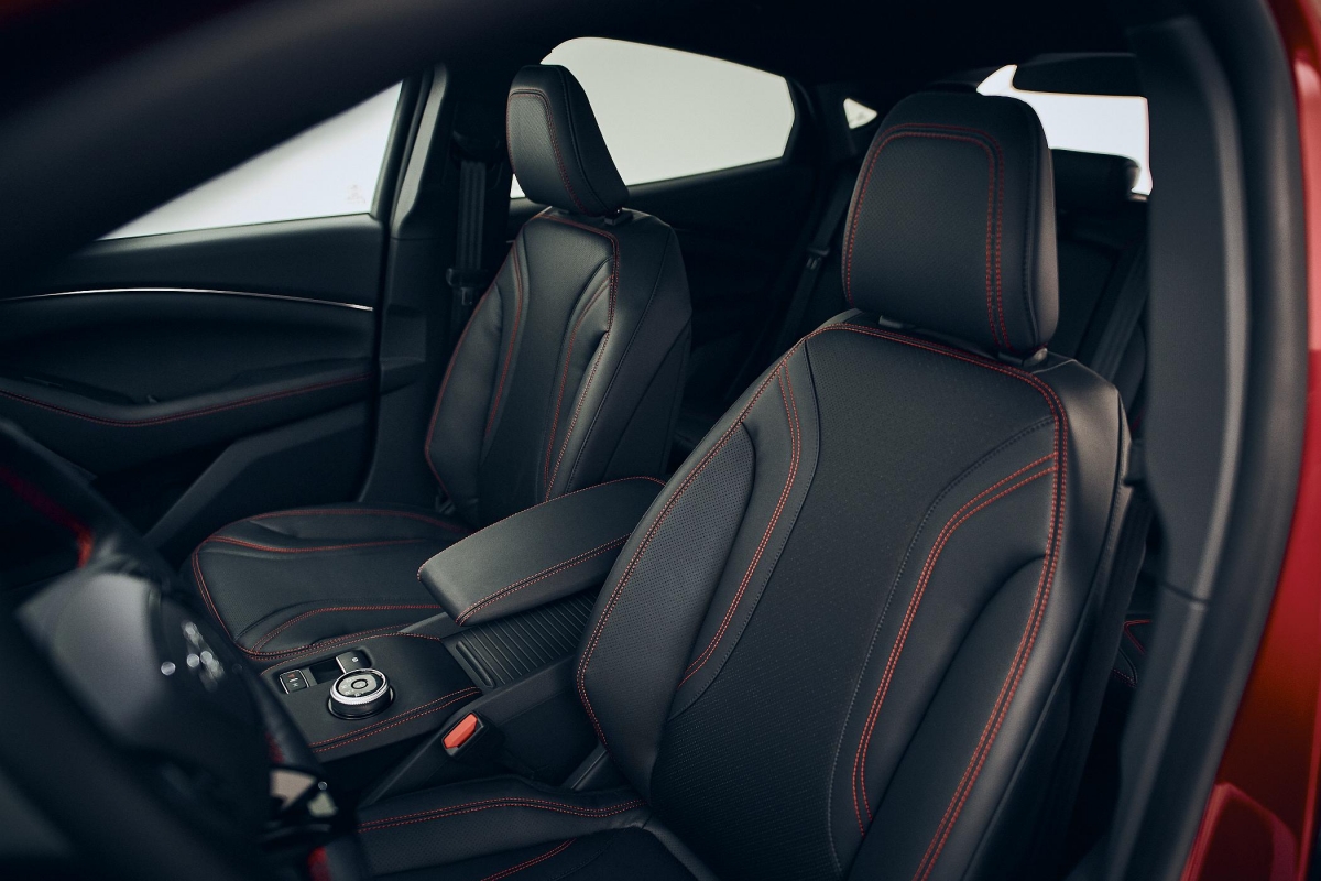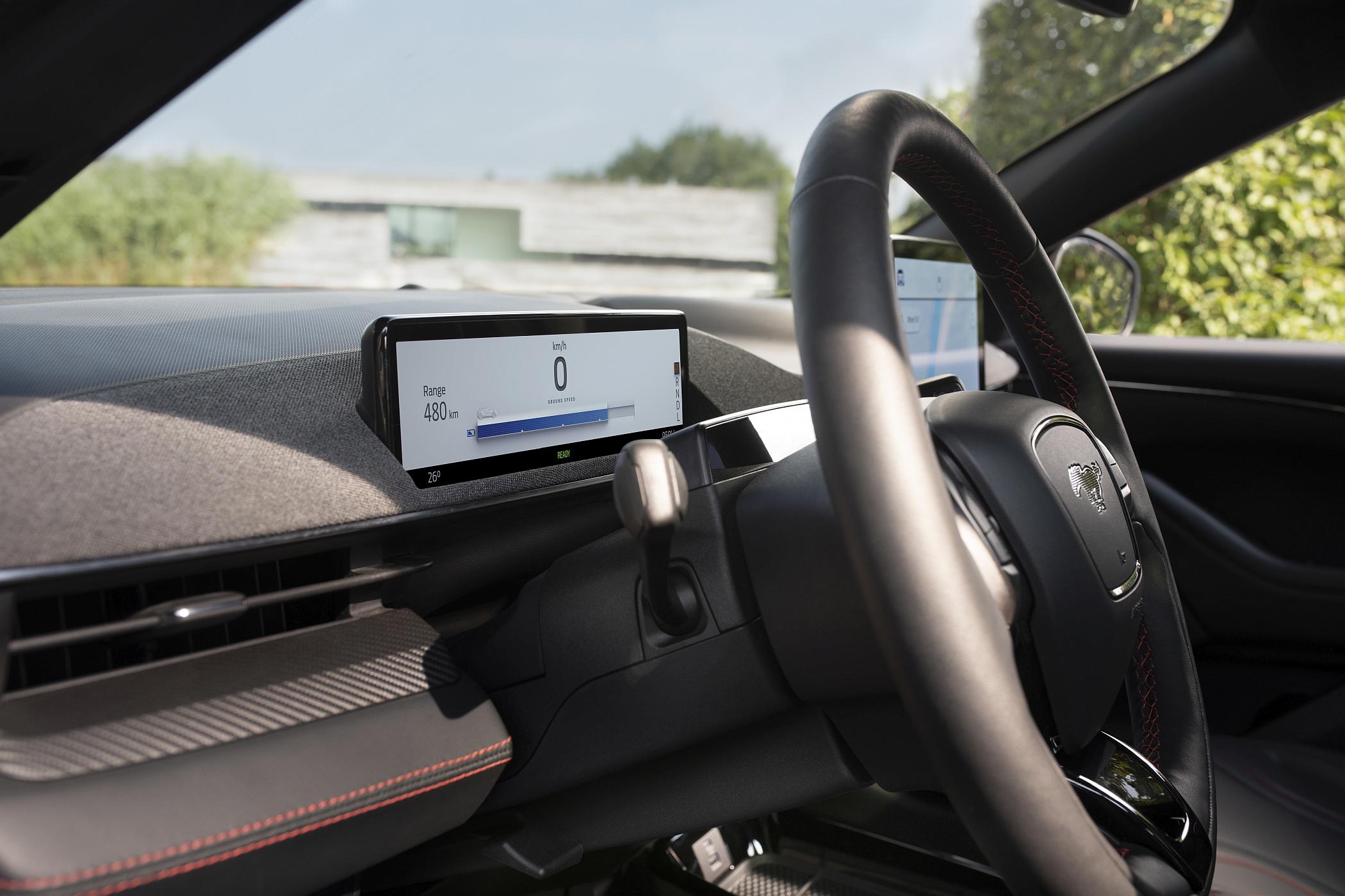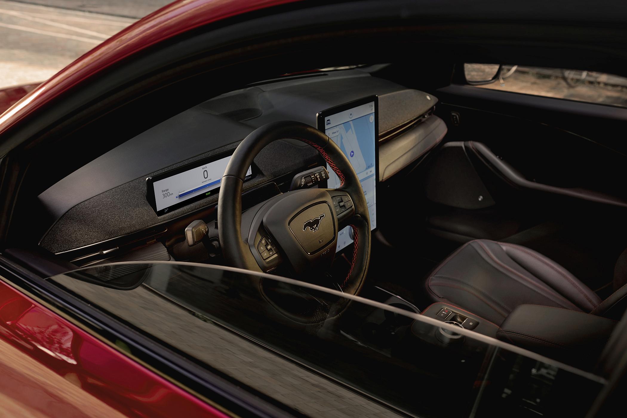 Ao volante, o Mustang Mach-E começa por revelar outros atributos, como a posição de condução apropriadamente SUV, ou seja, mais elevada para melhor visibilidade geral, embora a expensas de um maior entrosamento desportivo. A versão ensaiada recorre a uma configuração de dois motores elétricos para tração integral (AWD) e bateria ‘Long Range’ de 98.8 kWh (88 kWh úteis) para 540 quilómetros de autonomia homologada em ciclo WLTP.