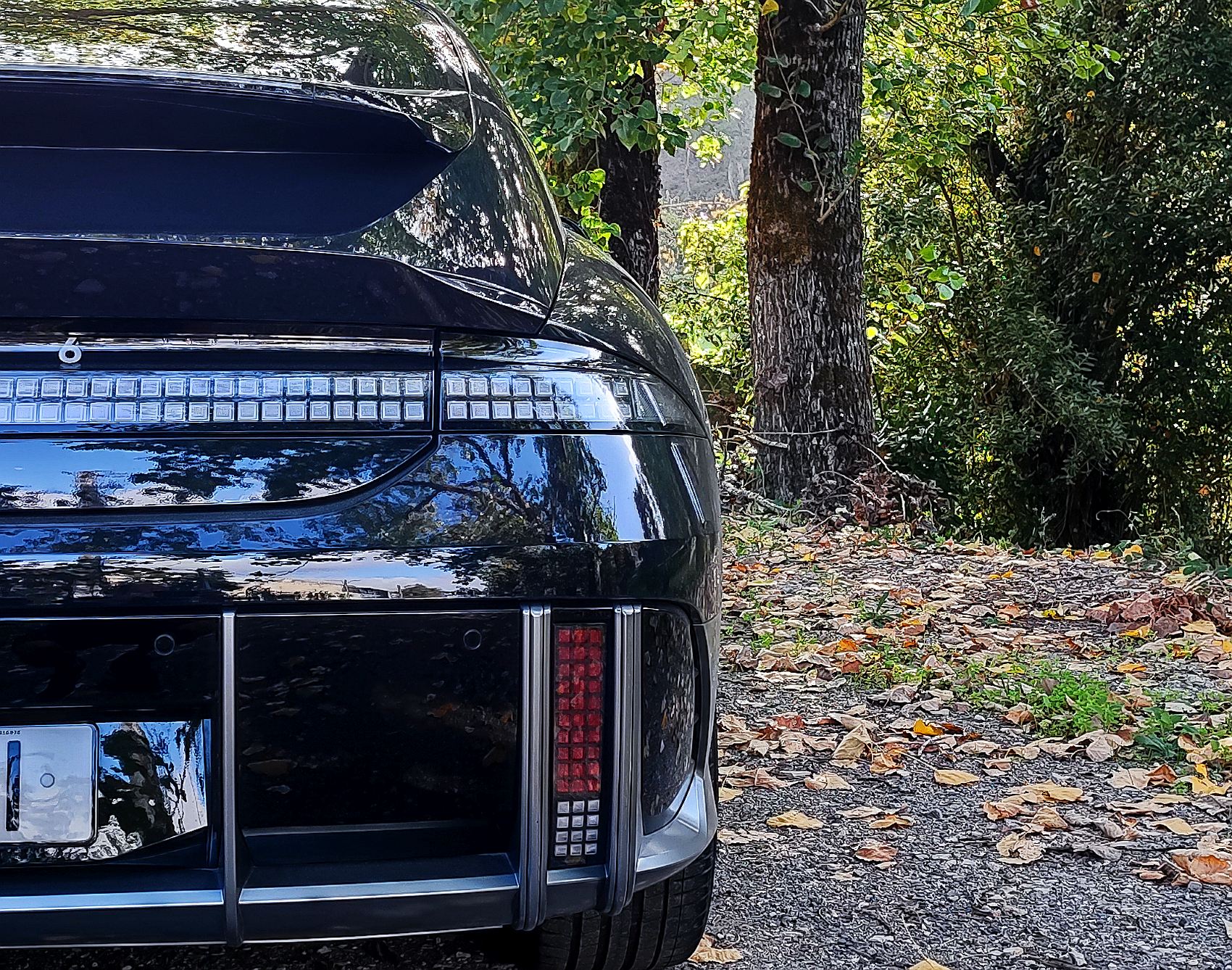 Com quase cinco metros de comprimento (4855 mm), o IONIQ 6 revela uma longa distância entre eixos de 2950 mm, apresentando ainda 1880 mm de largura e 1495 mm de altura para um coeficiente de arrasto de apenas 0.21 Cd, naquele que é o design mais aerodinâmico da marca sul-coreana. Apesar disso, o desenho desta berlina não deixa de ser algo polarizadora, sobretudo na zona traseira, algo sobrecarregada em termos de linhas e pelos dois spoilers sobrepostos. Mas os debates estéticos são pouco relevantes em matéria de eficiência.