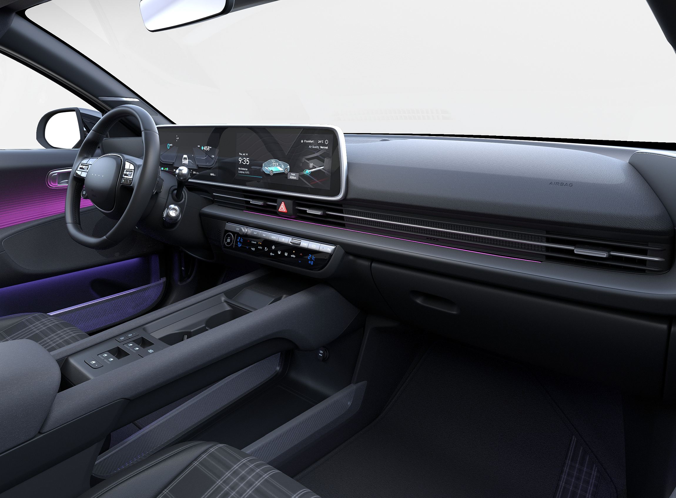 A bordo, sobressaem as noções de espaço e de conforto, bem como a excelente qualidade de construção aplicada no IONIQ 6. O ecrã de infoentretenimento de 12” e o painel de instrumentos digital de 12” combinam-se sob uma única superfície para a impressão de um único painel horizontal. A instrumentação varia consoante o modo de condução selecionado (‘Eco’, ‘Normal’ e ‘Sport’) e é bastante completa e bem legível, o mesmo sucedendo com o ecrã central que apresenta o mais recente sistema multimédia do Grupo Hyundai, com múltiplas aplicações, atualizações Over-The-Air (OTA) e conexão aos sistemas Apple CarPlay e Android Auto em recurso a cabos.