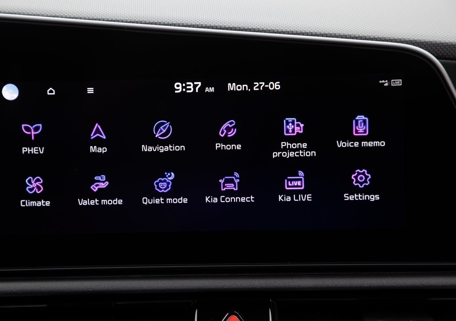 O interior personifica uma nova geração, muito mais ambiciosa. A estrutura de comandos é muito parecida com a que encontramos no EV6 e no Sportage, o que funciona como um ponto a seu favor, já que integra a tecnologia de forma funcional. Na consola (abusa do acabamento piano black, muito exposto a riscos e manchas), para além dos já mencionados espaços para arrumos posicionados à volta do seletor da caixa (o comando de aspeto mais antigo deste habitáculo), oferece, um pouco mais acima, um display tátil multimodo: trata-se de uma superfície com distintas funções de climatização e de multimédia, comutáveis entre si com um só toque num botão.