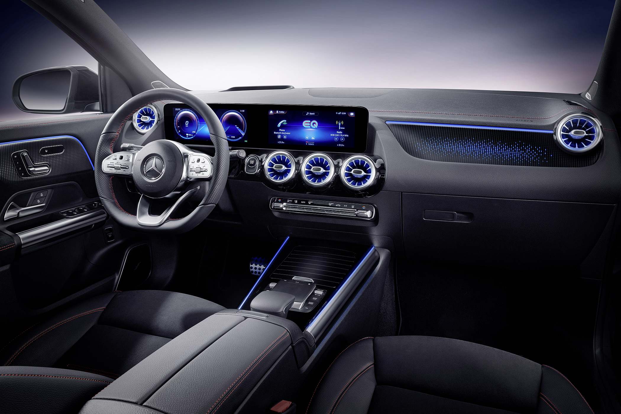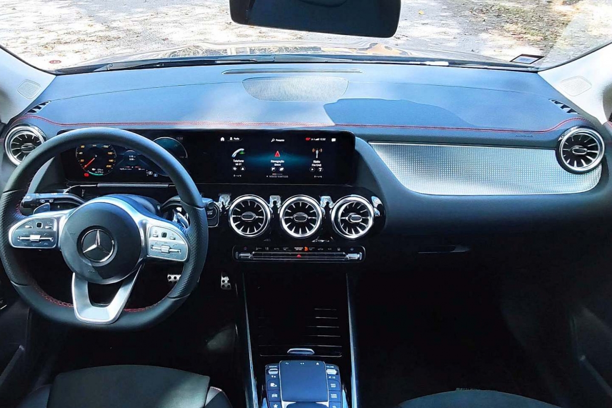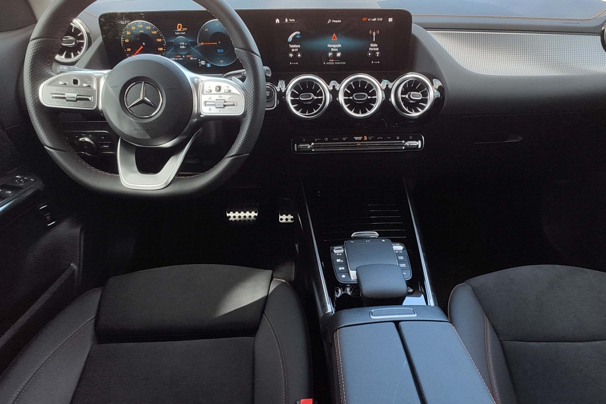 Tal como no EQA 250, apenas com um motor elétrico e tração dianteira, o EQA 350 4MATIC destaca-se pelo seu interior altamente evoluído com a dupla de ecrãs do MBUX a dominarem o ambiente. Configuráveis, nítidos e de fácil interação, os dois ecrãs surgem horizontalmente no tablier, com 10.25″ cada um, proporcionando um visão ‘widescreen’ que já é usual na marca. O ecrã central é tátil e serve para controlar uma grande série de sistemas do EQA, havendo ainda a possibilidade de se optar pelo comando vocal ‘Hey Mercedes’ para interagir nalguns parâmetros com o veículo, como pedir para ligar o aquecimento ou o ar condicionado.