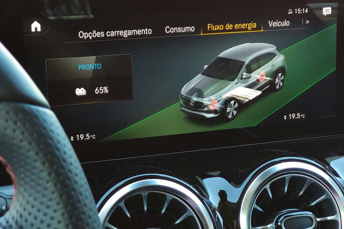 A bateria de iões de lítio tem uma capacidade ‘útil’ de 66.5 kWh, permitindo uma autonomia homologada em ciclo WLTP de 430 quilómetros, que nos parece exequível se se adotar uma condução mais eficiente. No nosso ensaio, obtivemos uma média de 16.7 kWh/100 km, abaixo até da média homologada de 17.6 kWh/100 km, o que comprova a eficiência do EQA 350 4MATIC. Para recarregar, é admitido um valor de até 100 kW em postos rápidos de corrente contínua (CC), nos quais 32 minutos repõem de 10 a 80% da carga da bateria. Numa ‘wallbox’ de 7.4 kW, uma recarga completa leva cerca de nove horas.