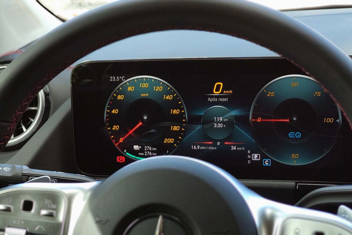 Os modos de condução são alterados a partir de comando dedicado (Dynamic Select), permitindo escolher entre o mais eficiente ‘Eco’, o ‘Comfort’ (por defeito) e o mais desportivo ‘Sport’, que torna a experiência de condução mais efusiva. Porém, pela possibilidade de maior eficiência sem alterar substancialmente as prestações, cremos que o modo ‘Eco’ é mais do suficiente para a prática quotidiana. Nota ainda para os modos distintos de regeneração a partir das patilhas atrás do volante, havendo um modo que permite ‘roda livre’ e dois de maior retenção para condução próxima à dos sistemas de pedal único, aproveitando a desaceleração proporcionada pelo nível mais elevado de regeneração (D–).