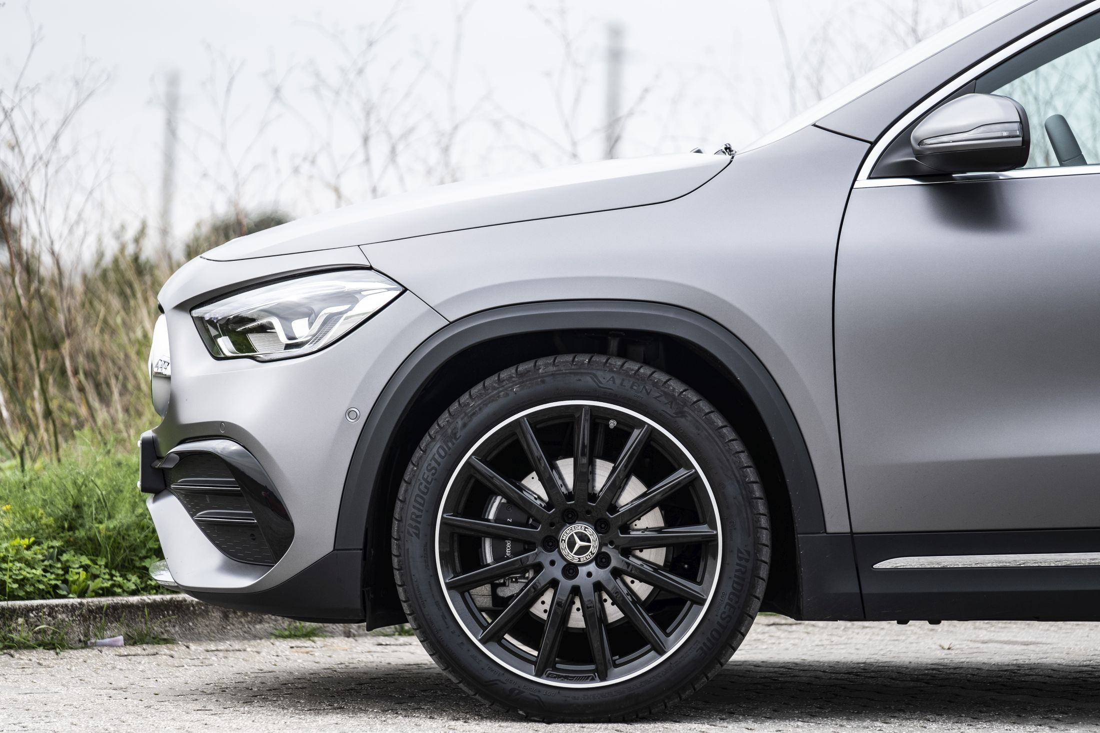 Dinamicamente, o GLA exibe precisão assinalável, com um acerto muito mais orientado para a condução aguerrida do que para o conforto. Equipado com a suspensão opcional ‘conforto rebaixada’ e jantes AMG Line de 20 polegadas, o que ganha na precisão e estabilidade em curva perde em conforto, embora seja um compromisso que agradará a uma franja de clientes mais jovem. Quando o percurso se torna mais sinuoso, a direção comunicativa e precisa e o chassis bastante rígido – cortesia da nova plataforma compacta – permitem extrair o melhor do GLA em termos dinâmicos.