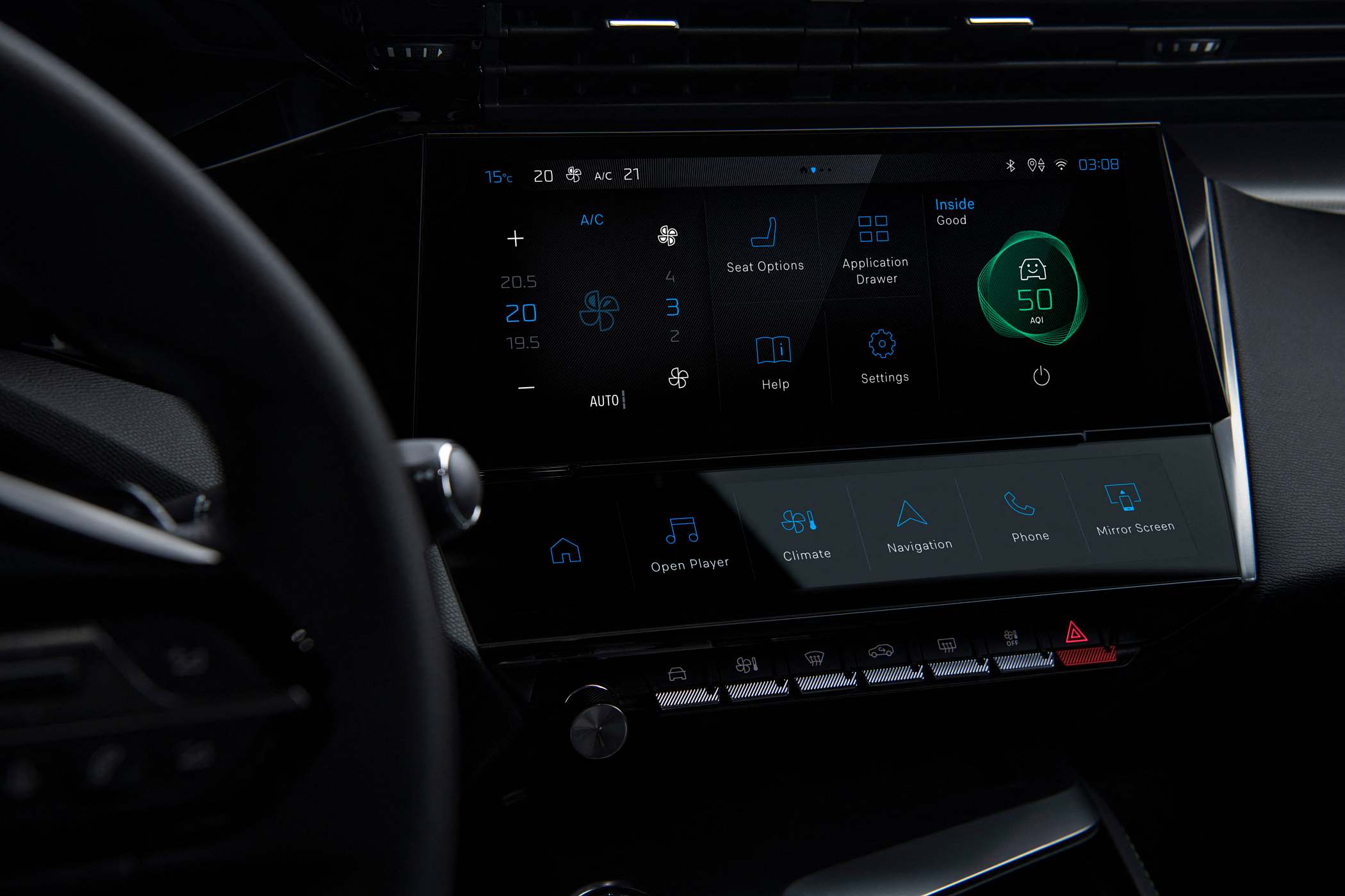 A funcionalidade ‘Mirror Screen’ (espelhar o ecrã do smartphone) faz-se sem fios, sendo agora possível conectar dois equipamentos com Bluetooth em simultâneo.